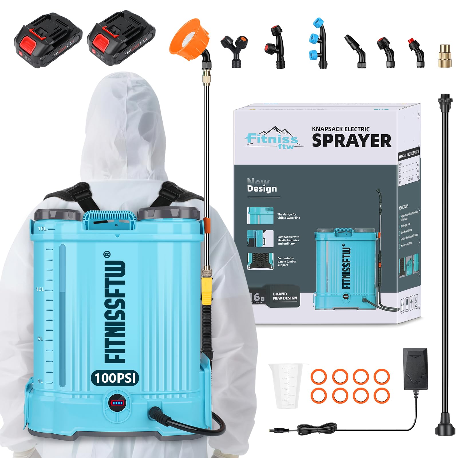 Pulverizador de mochila alimentado por batería de 4.2 galones, rociador de jardín de presión ajustable de 0-100 PSI compatible con
