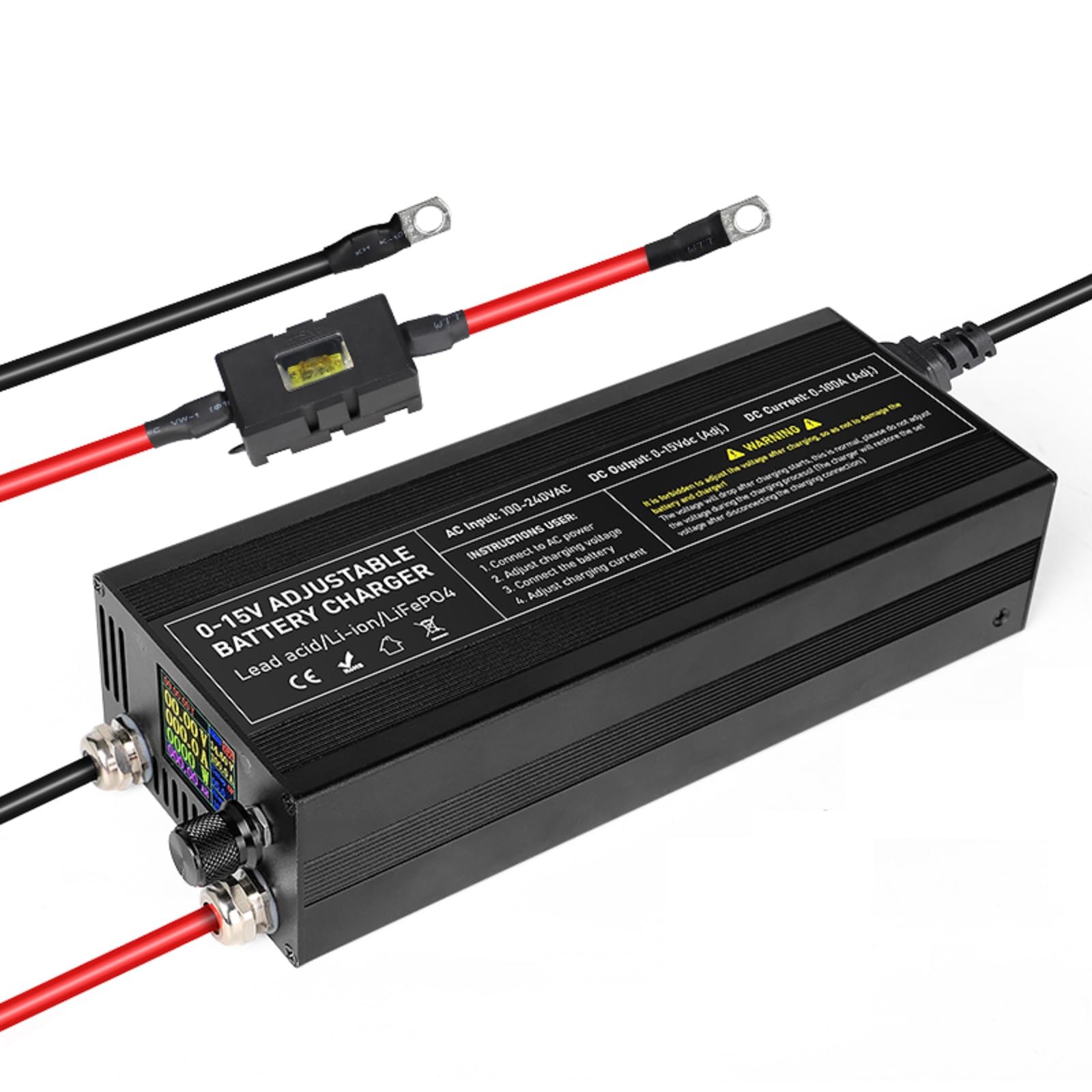 Cargador de batería LiFePO4 de 14.6 V, cargador de alta potencia de 12.8 V, voltaje ajustable 0-15 V y corriente 0-100 A, cargador