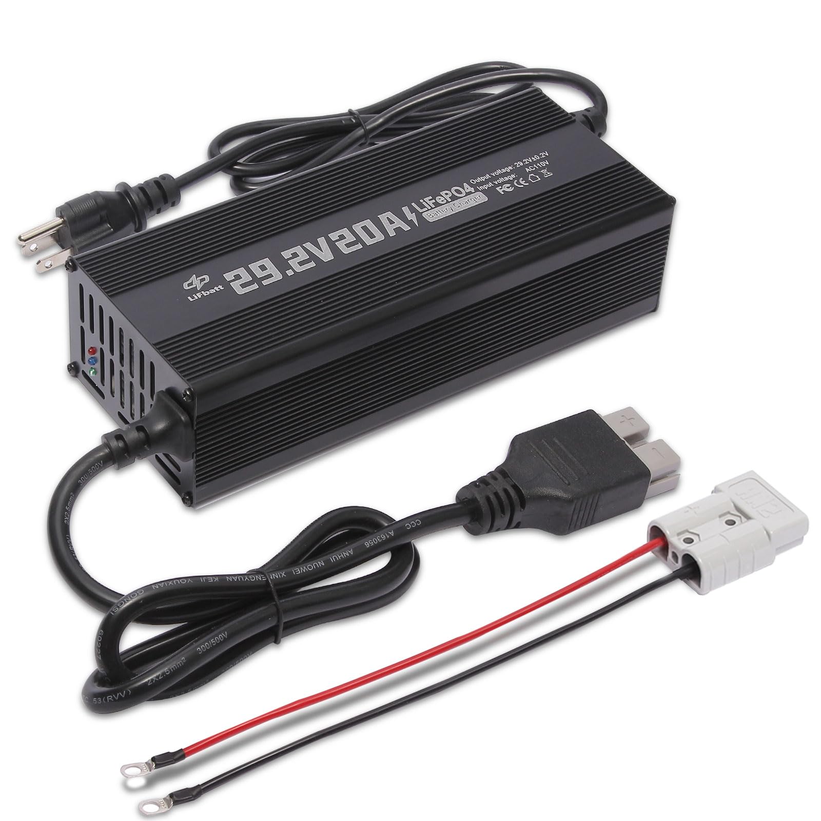 Cargador de batería LiFePO4 de 24 V 20 A, cargador inteligente de batería de litio de 29.2 V con conector Anderson y cable adaptad