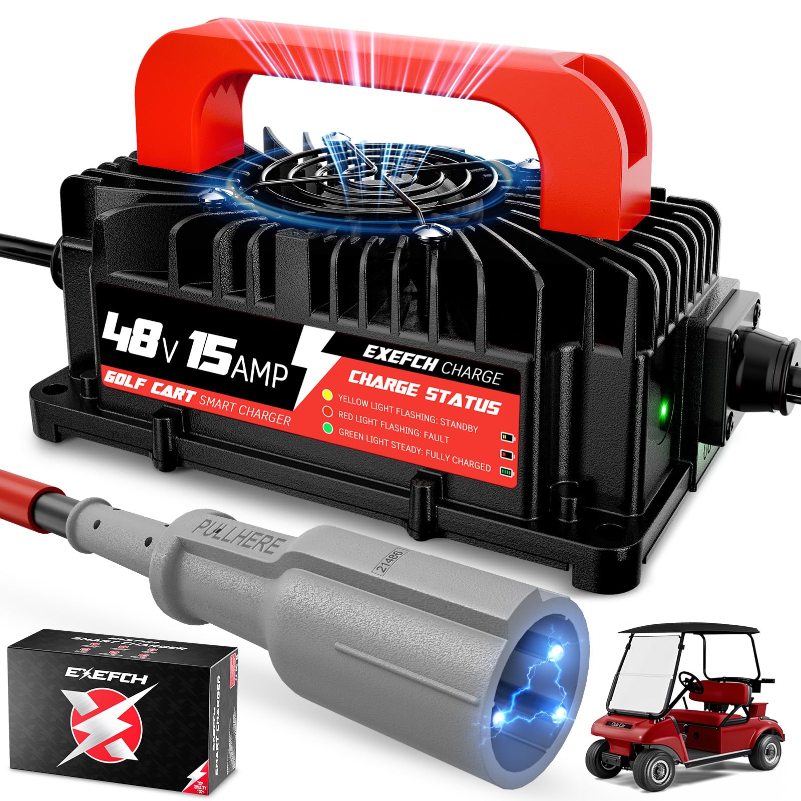 Cargador de batería para carrito de golf para Club Car (cargador de plomo ácido negro para coche club)