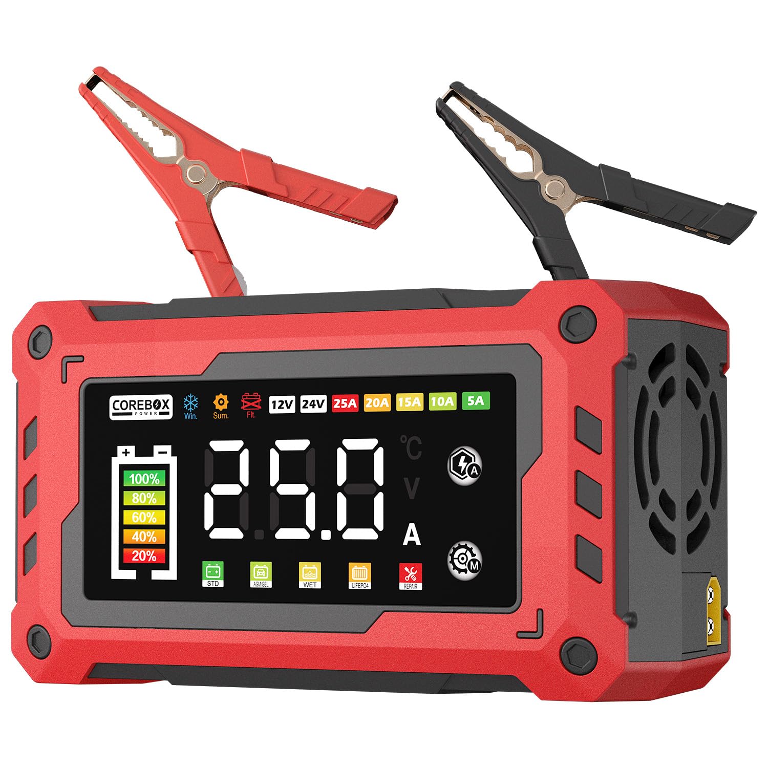 Cargador de batería de 0 a 25 amperios, 12 V/24 V, cargador de batería inteligente automático, cargador de goteo, mantenimiento de