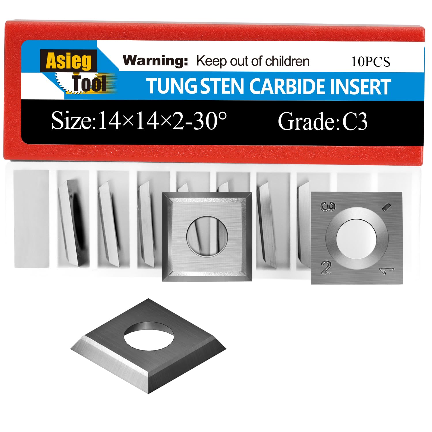 Asieg Tool 14.3×14.3×2.0-50° Insertos de carburo Cuchillos Cortadores 2 Filos de Corte para Herramienta Cepilladora Jointer 40700H