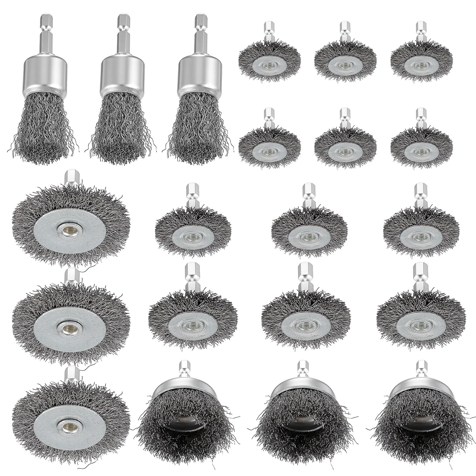 Juego de 21 cepillos de alambre, rueda de alambre, taza, juego de cepillos para bolígrafo, juego de cepillos de acero al carbono d