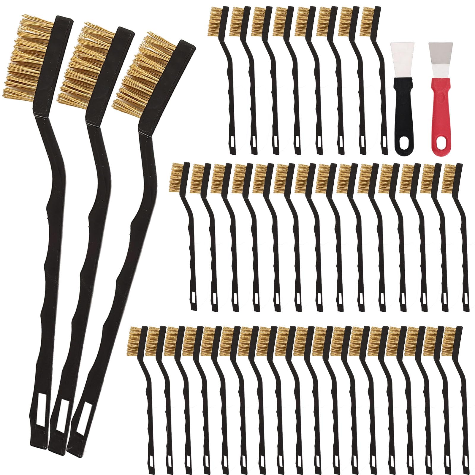 Juego de 40 cepillos de alambre de latón con mango curvado, cepillo de alambre para limpieza de escoria y óxido de soldadura