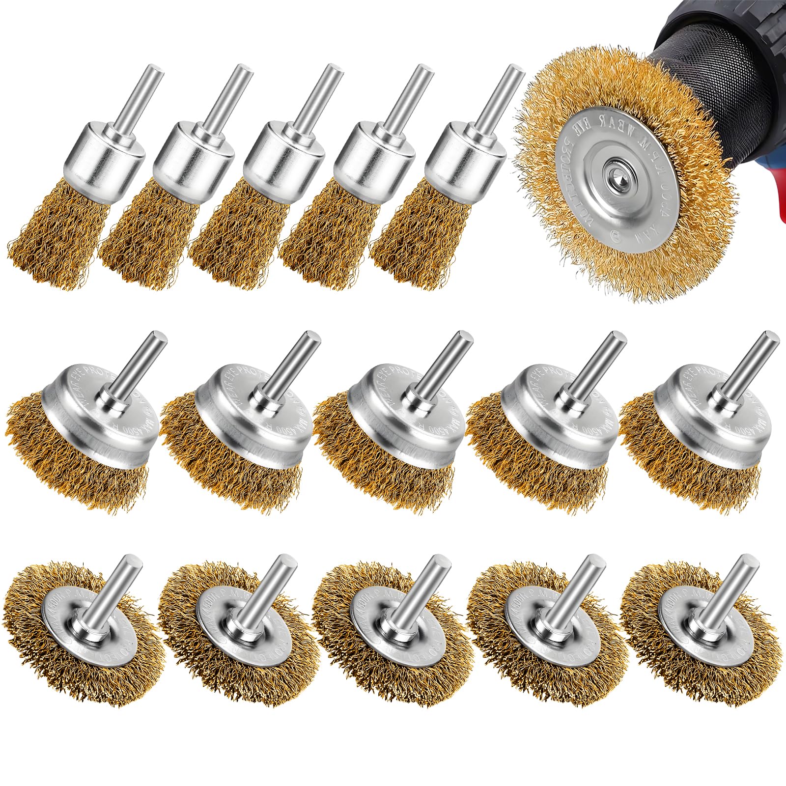 15 cepillos de alambre de cobre, rueda de cepillo de alambre, kits de rueda de pulido de alambre de cobre para herramientas rotati