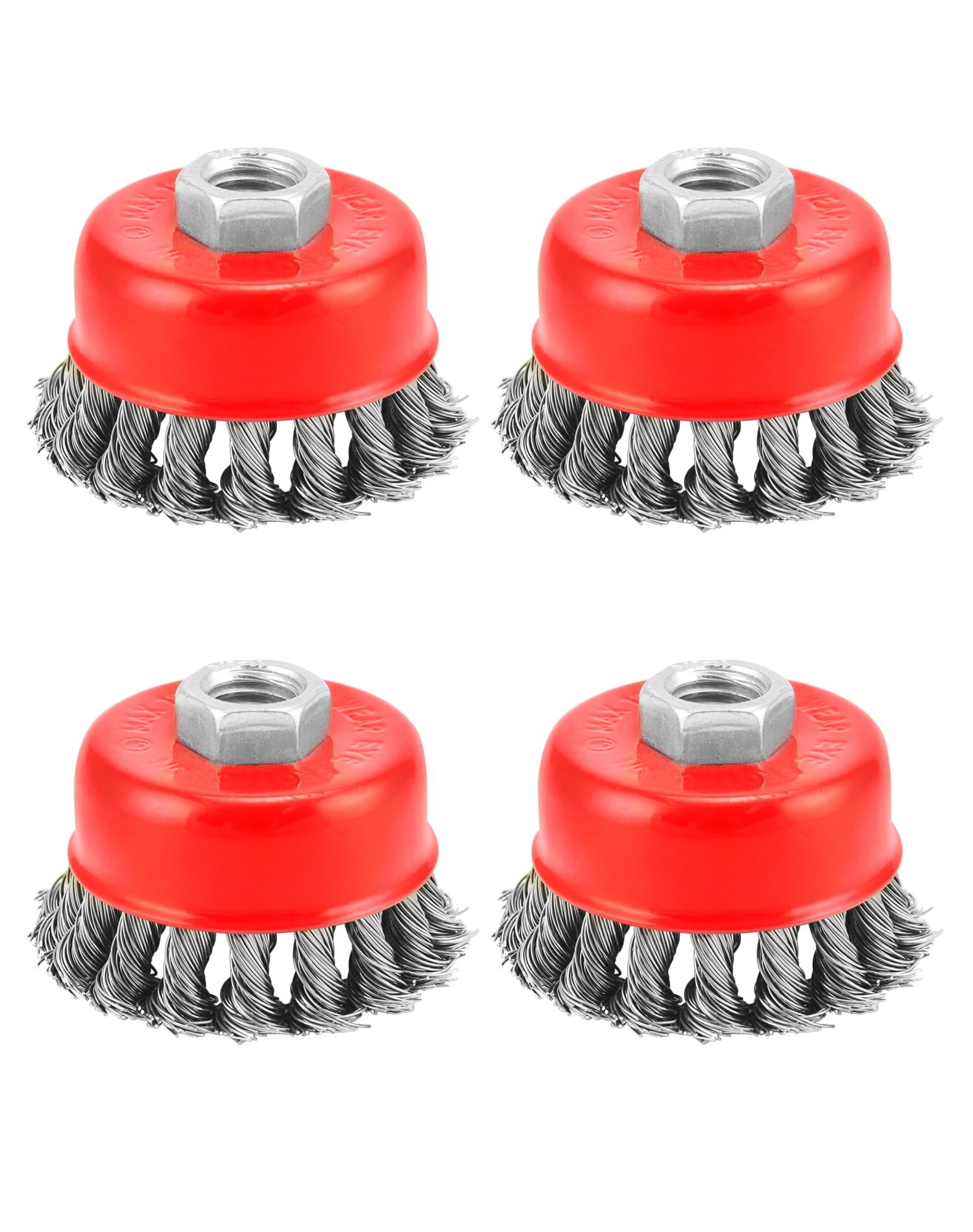 QWORK Paquete de 4 cepillos para rueda de alambre, 4 ruedas de alambre trenzado de 3 pulgadas, eje roscado de 5/8 pulgadas a 11, 0