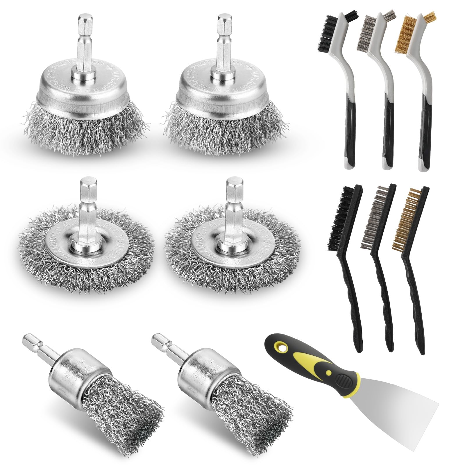 Juego de 13 cepillos de alambre de acero al carbono, cepillo de alambre para taladro, cerdas de nailon/latón/acero inoxidable, sum