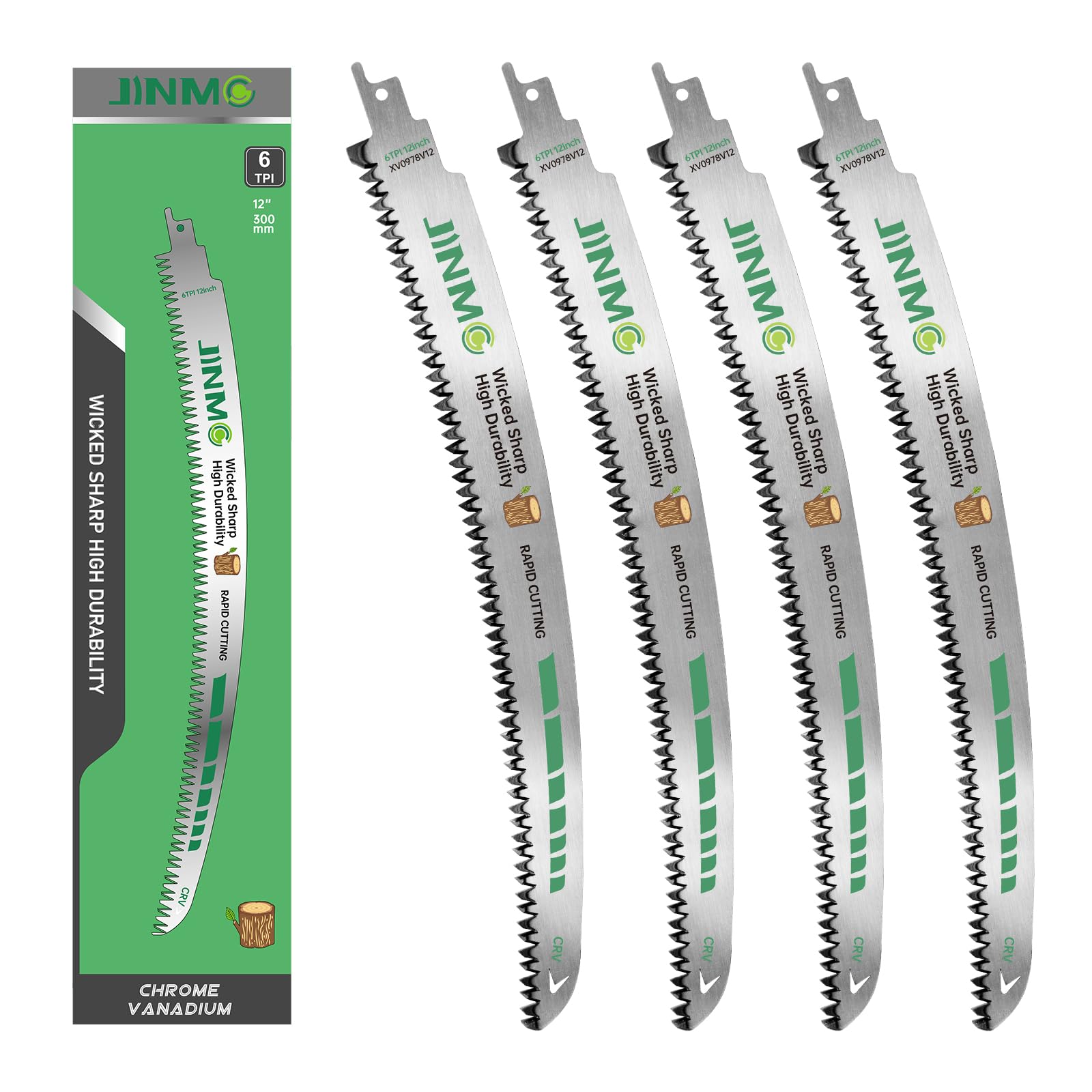 Hojas de sierra recíproca curvadas de arco de 12 pulgadas para poda de árboles y poda de madera, 6 TPI, 4 piezas, ideal para corta