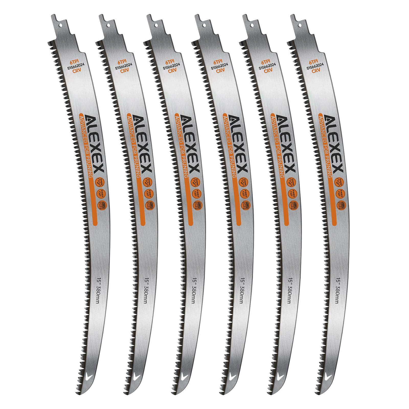 ALEXEX 6 hojas de sierra recíproca de dientes japoneses de 15 pulgadas para cortar madera y recortar árboles, 6TPI hojas de sierra