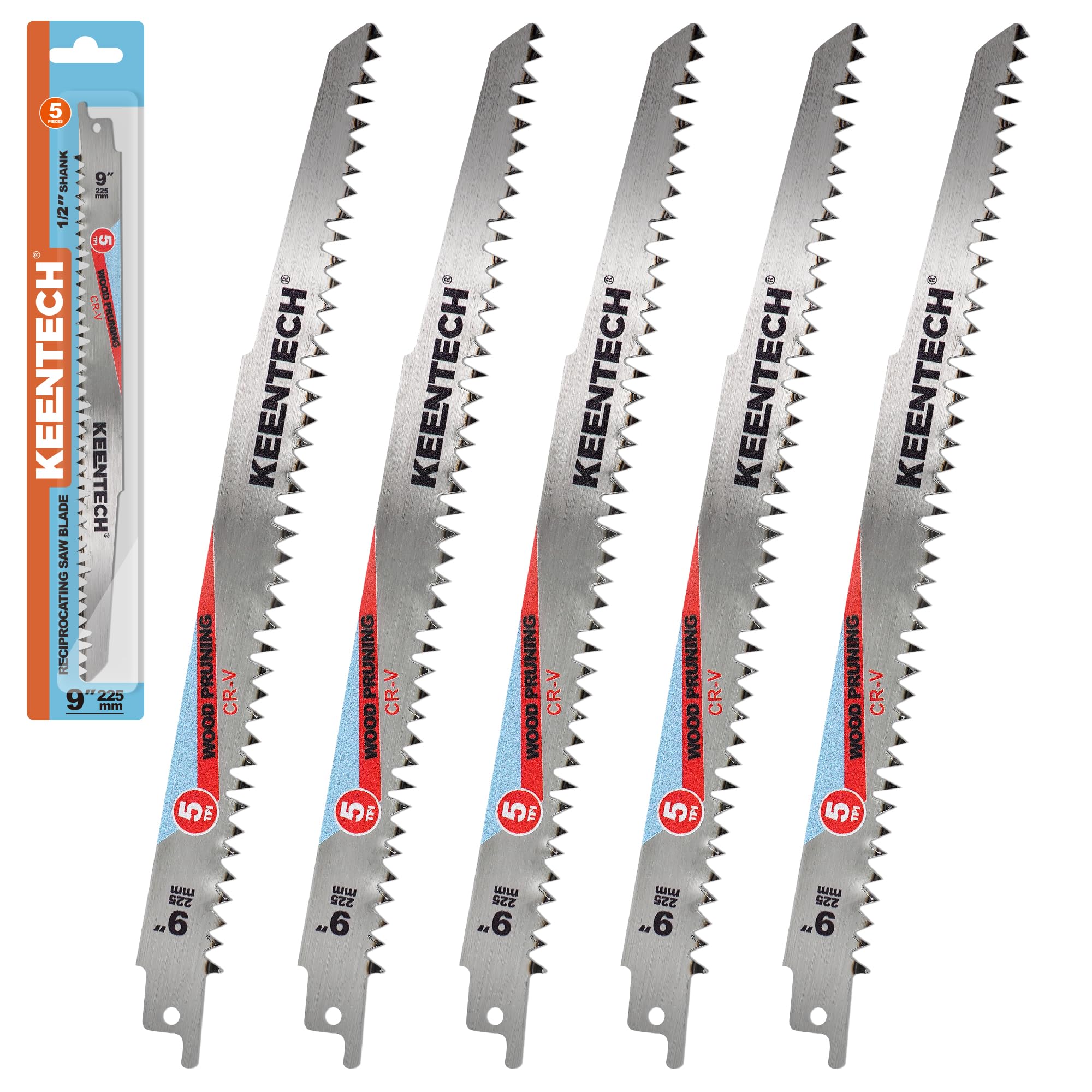 KEENTECH Hoja Cr-V Sawzall de 9 pulgadas 5 TPI para corte de madera y plástico, poda de árboles, compatible con sierras recíprocas
