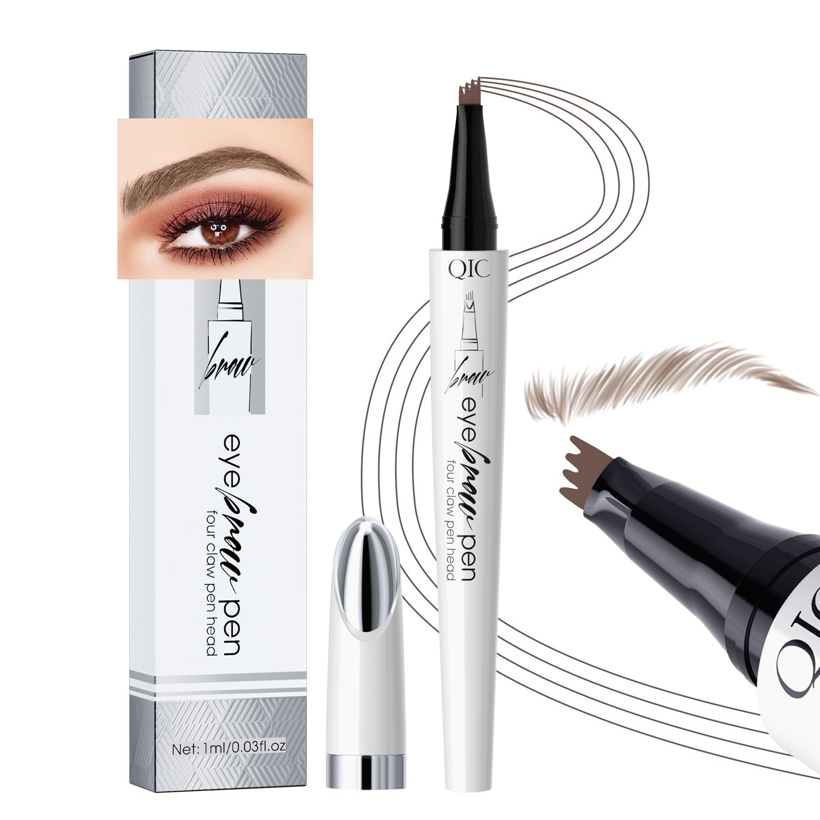 Q709 Brow Master – Pluma de cejas impermeable de 4 vías para cejas sin esfuerzo (2# café oscuro)