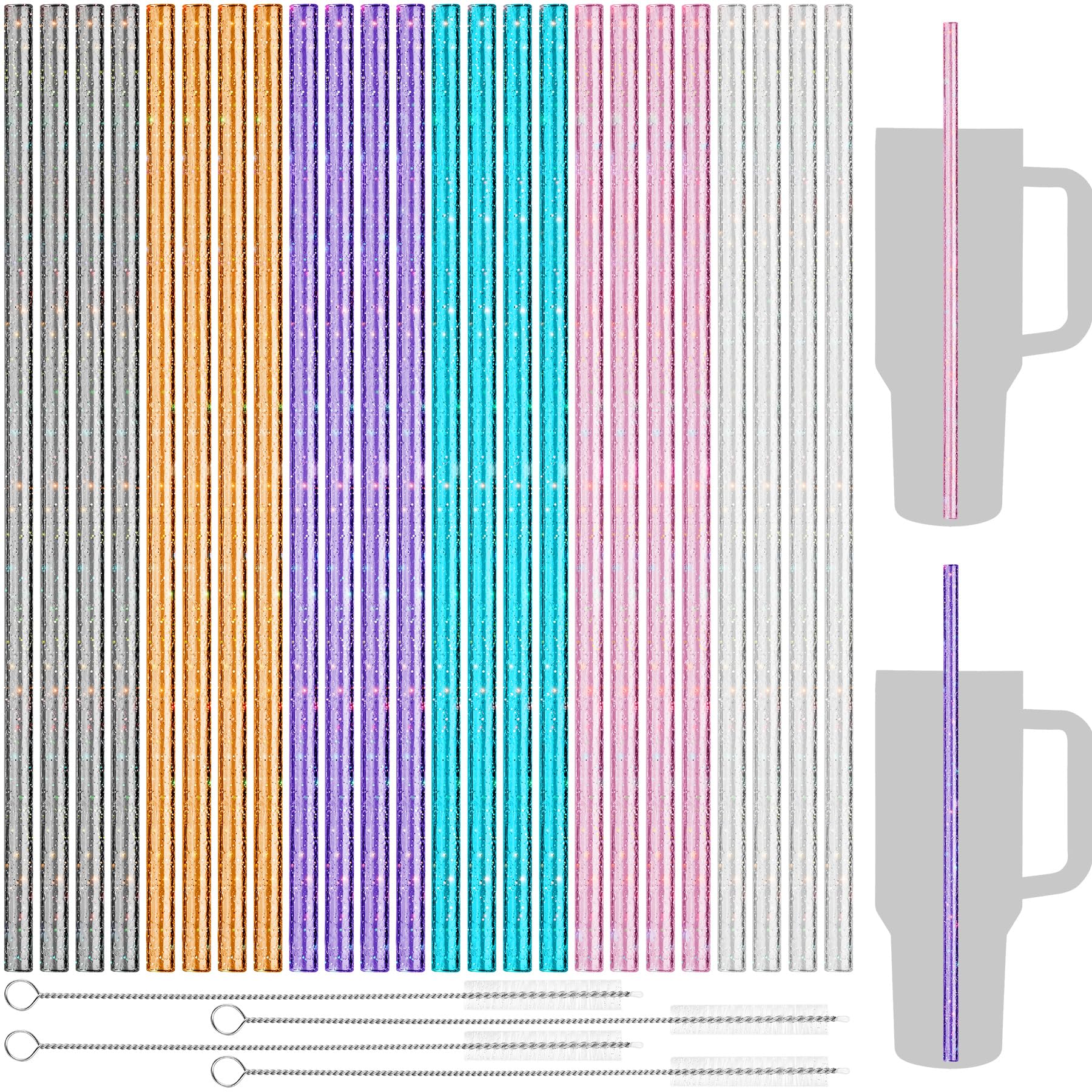 NiHome Pajitas de 40 onzas, paquete de 24 popotes de repuesto de plástico con purpurina para vaso Stanley de 40 onzas, popotes reu