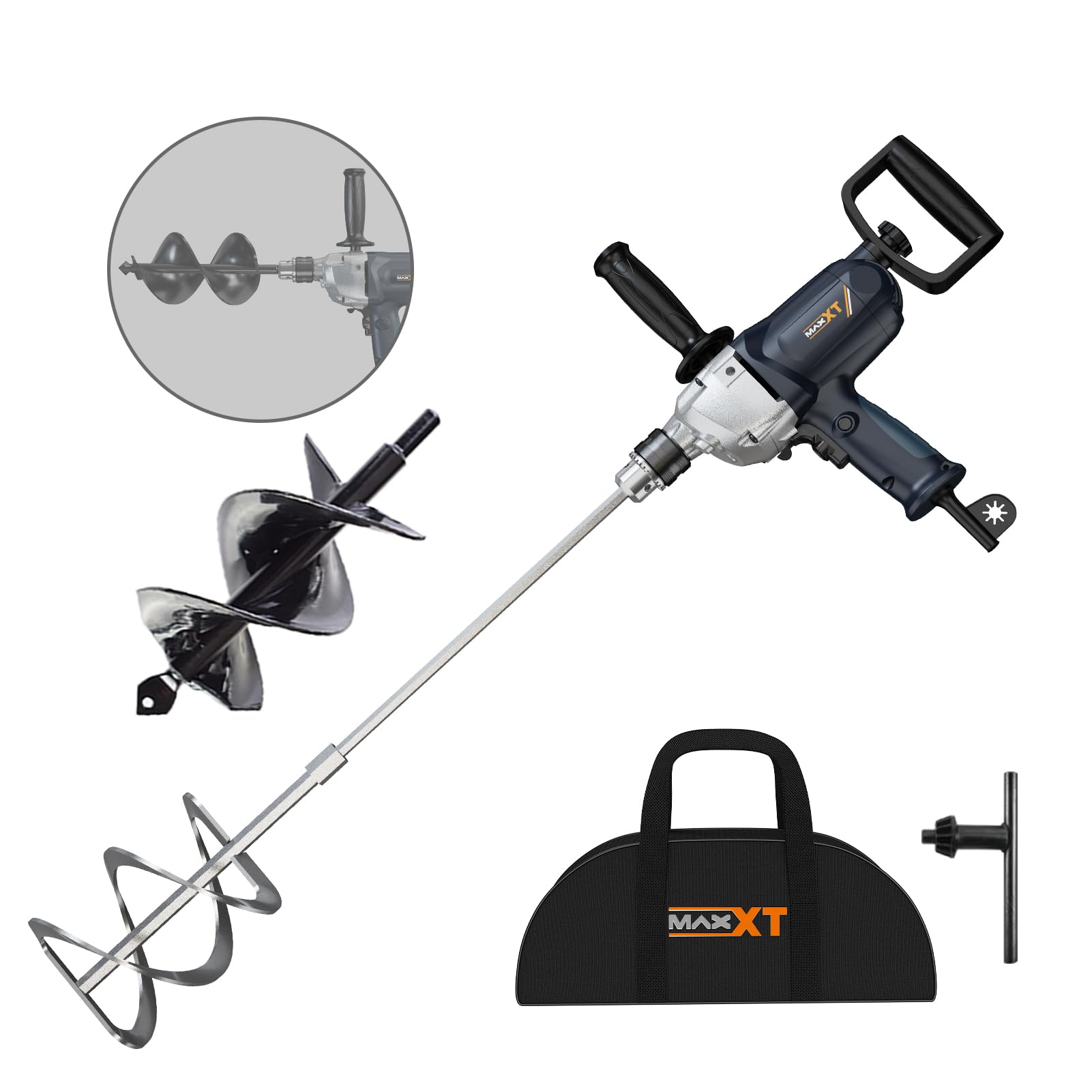 MAXXT Juego de mezcladores de taladro de motor 9A con mango de pala, taladros eléctricos de 1/2 pulgadas, taladradora mezcladora c