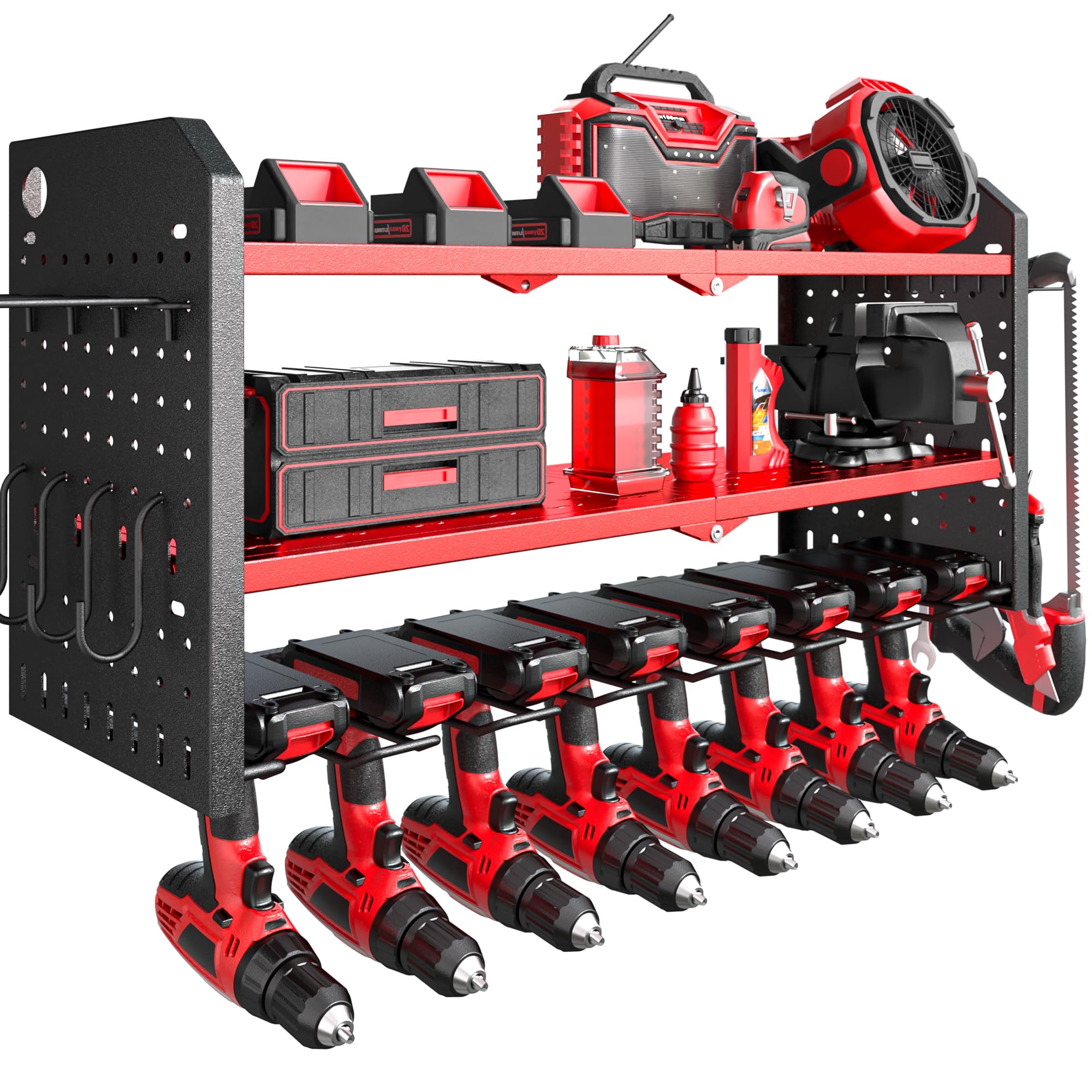 SUPERDANNY Organizador de herramientas eléctricas con estación de carga, estante de almacenamiento ajustable de 4 niveles y 8 tala