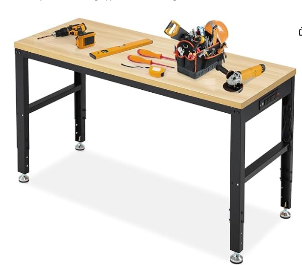 Banco de trabajo de 60 pulgadas con cajones de almacenamiento, banco de trabajo ajustable para garaje con ruedas, tomas de corrien