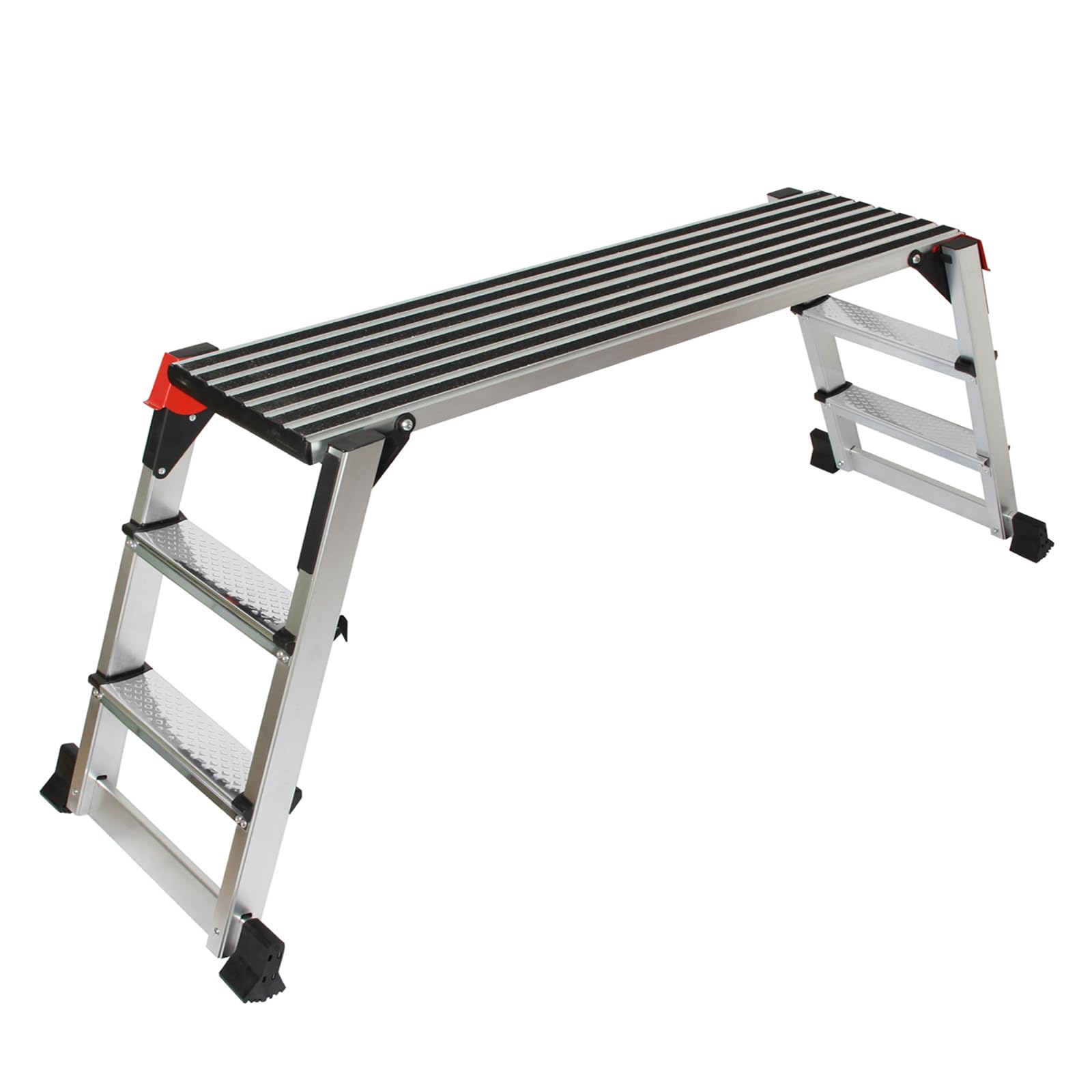 LEADALLWAY Plataforma de trabajo de aluminio de 50 x 12 pulgadas, escalera de 2 escalones, banco de trabajo portátil plegable con