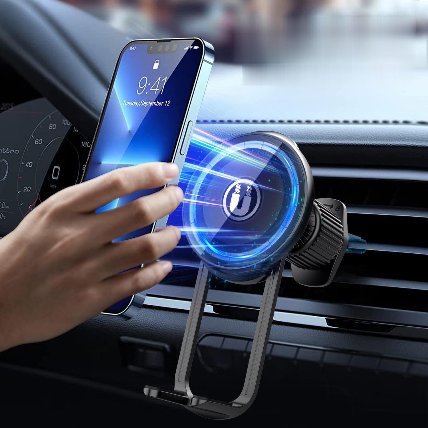 Bben Soporte magnético para teléfono MagSafe para automóvil, manos libres, apto para iPhone 15/14/13 Pro Max, 17 N52 imanes para s