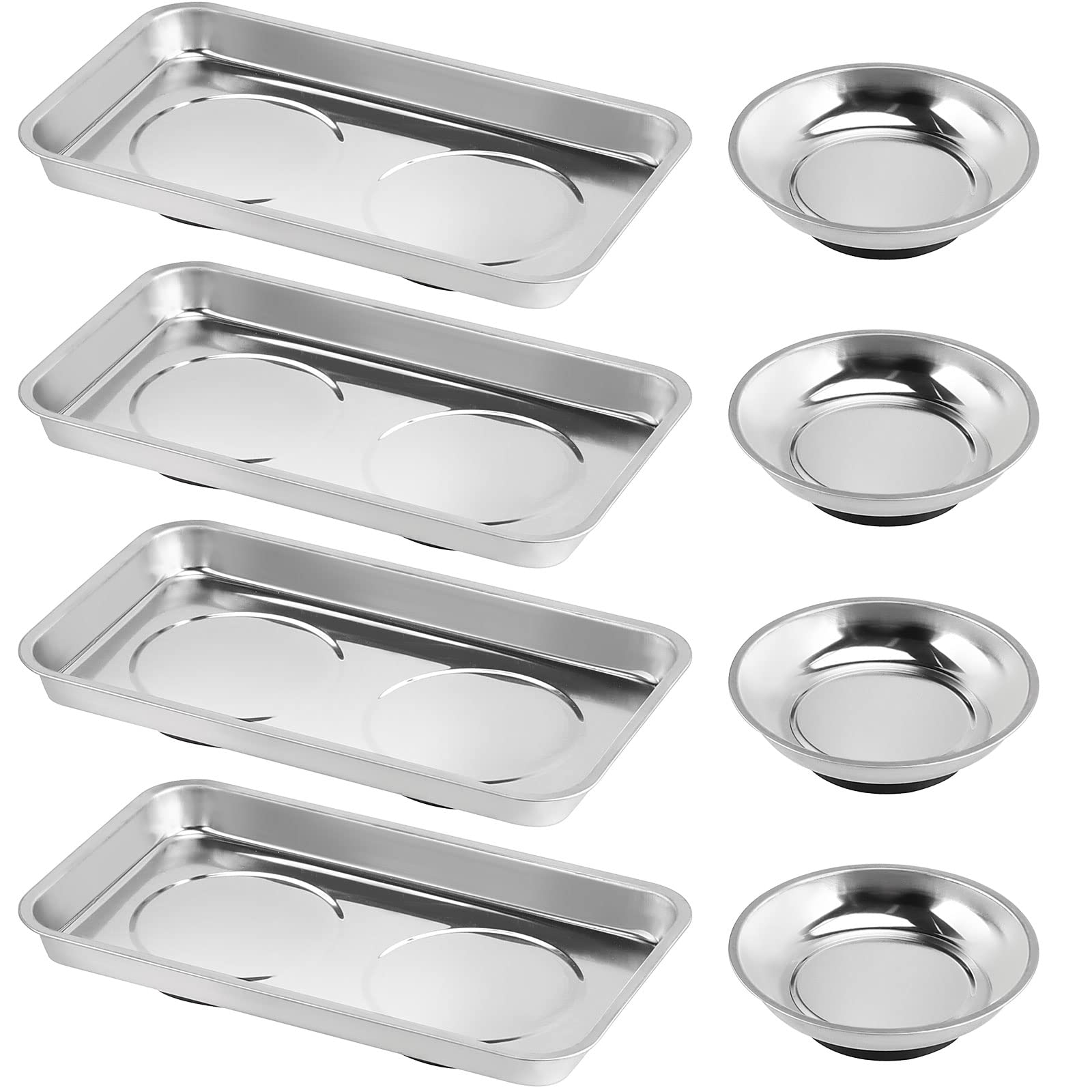 JOIKIT Juego de 8 bandejas magnéticas para piezas, soporte magnético de acero inoxidable, bandejas de pernos redondos de 4.2 pulga