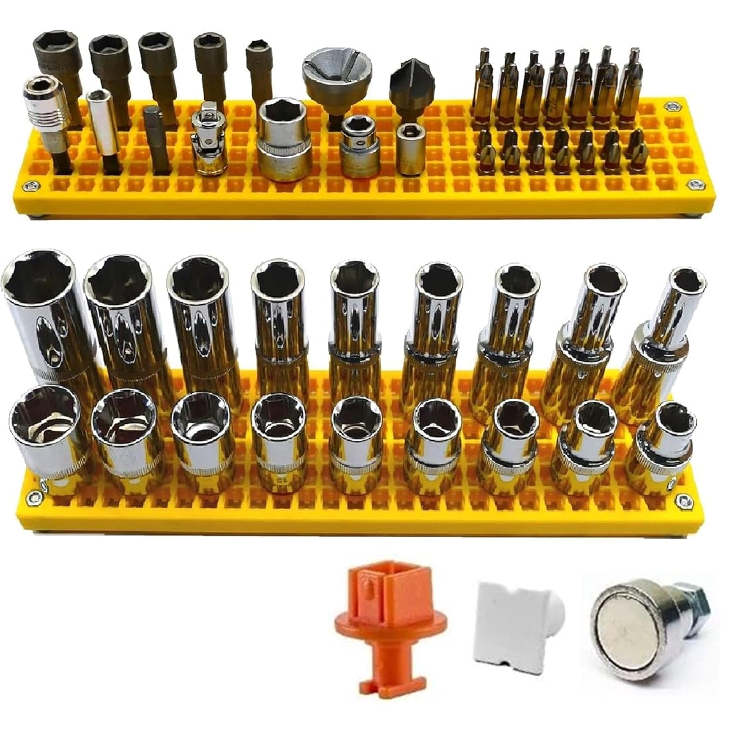 Zona libre – Organizador magnético de puntas y zócalos | Capacidad para 50 piezas de 3/8 pulgadas Dr. Socket | Almacenamiento de m