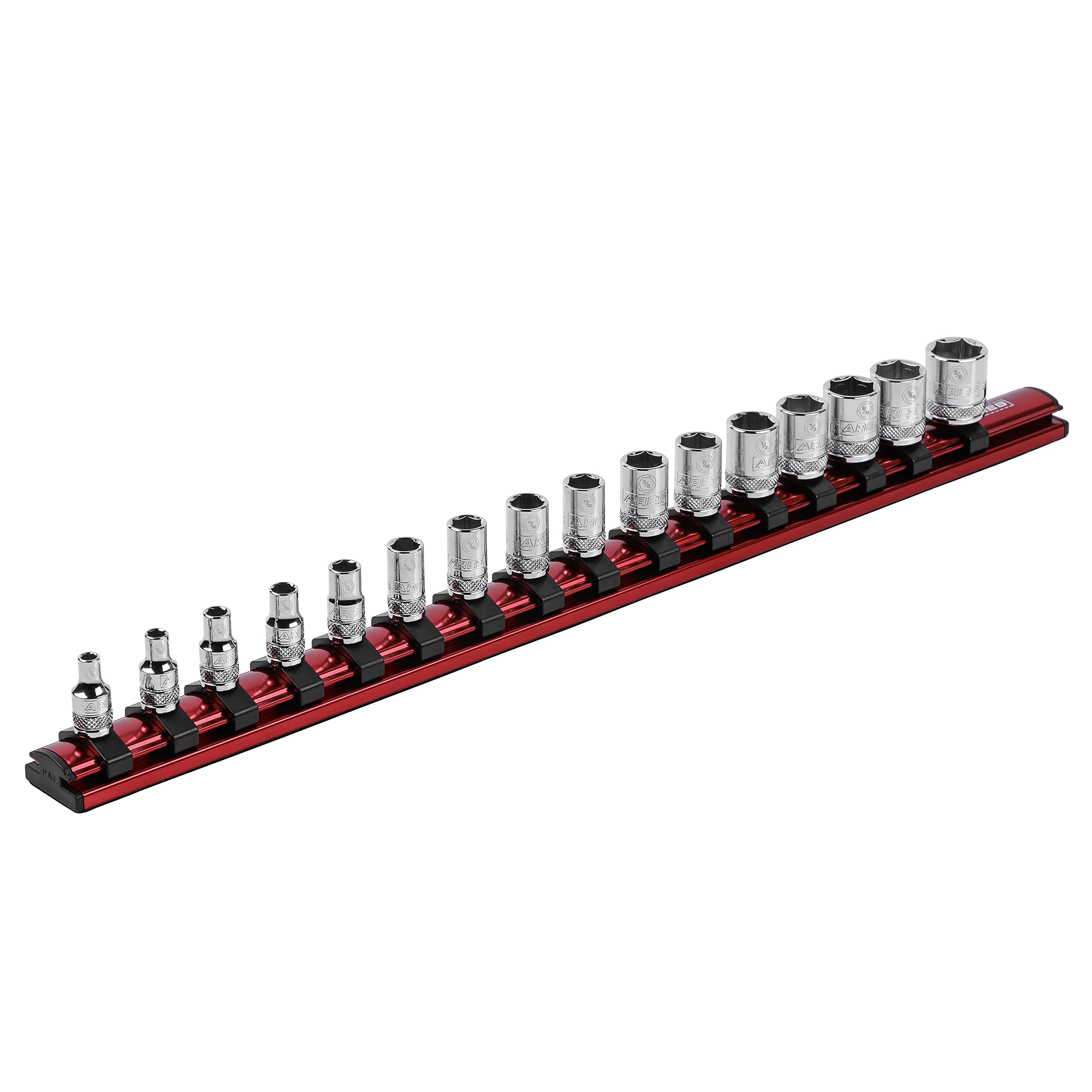 ARES 60127-1/4-Inch Drive Magnetic Socket Organizer – Riel de aluminio almacena hasta 16 enchufes y mantiene tu caja de herramient