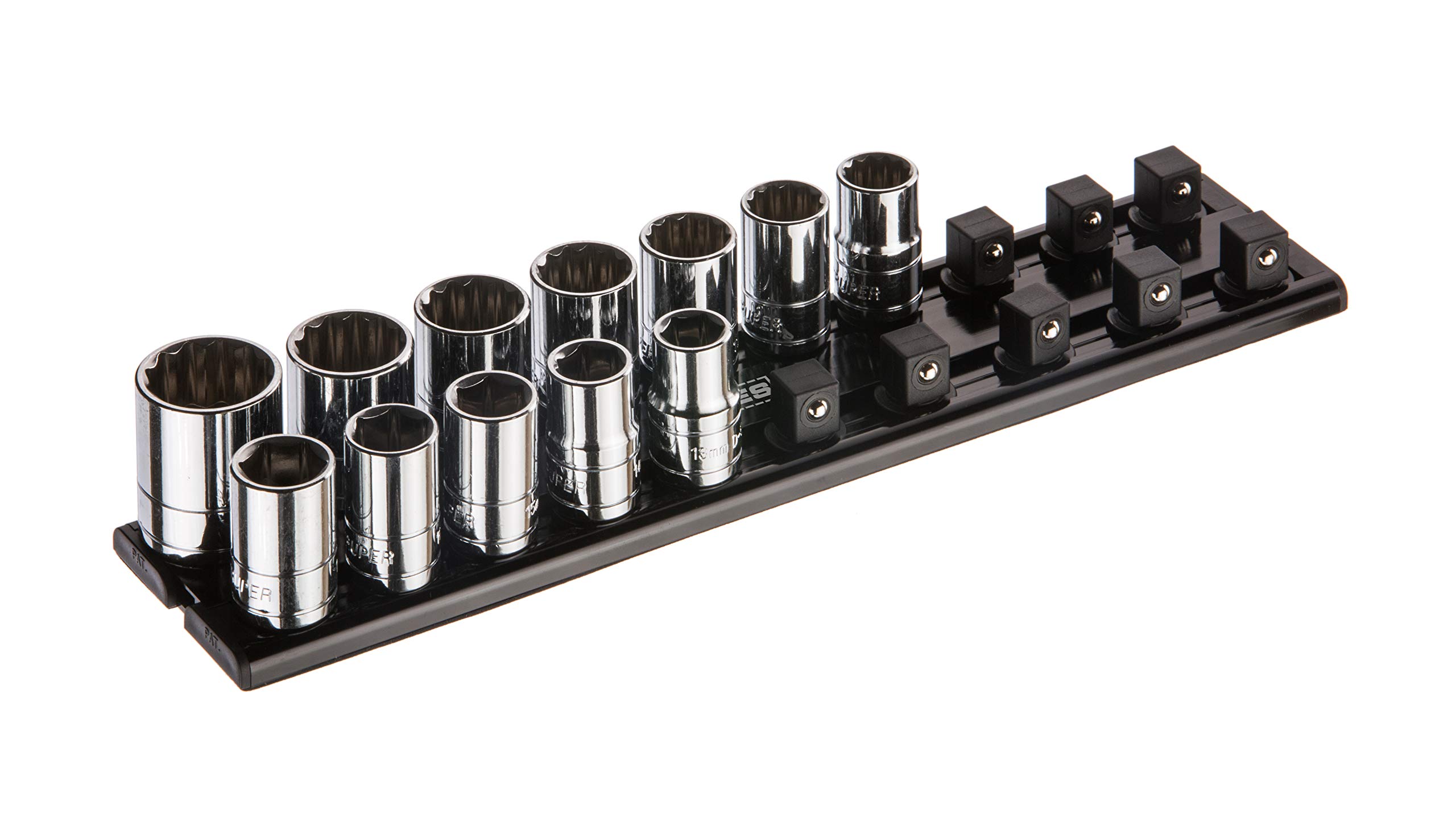 Vetco – Soporte magnético SAE de 26 piezas de 3/8 pulgadas, clasifica de forma segura 13 enchufes estándar y 13 profundos, mantén