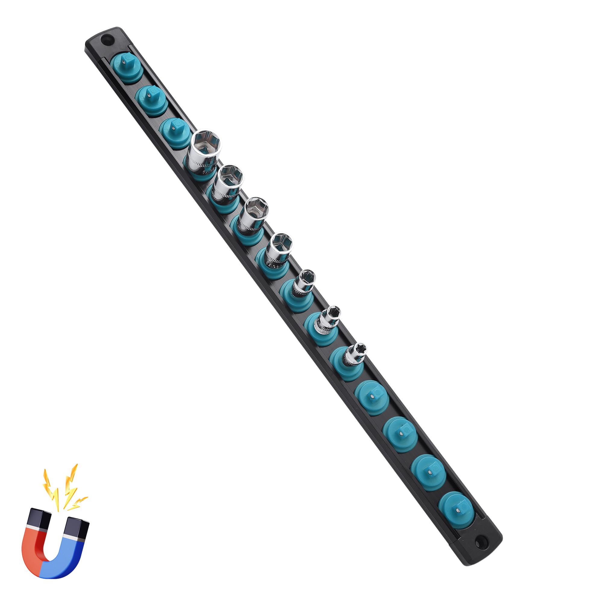 Organizador magnético de enchufes de 1/4 pulgadas, organizador de riel de enchufe de aluminio resistente, kit de soporte de enchuf