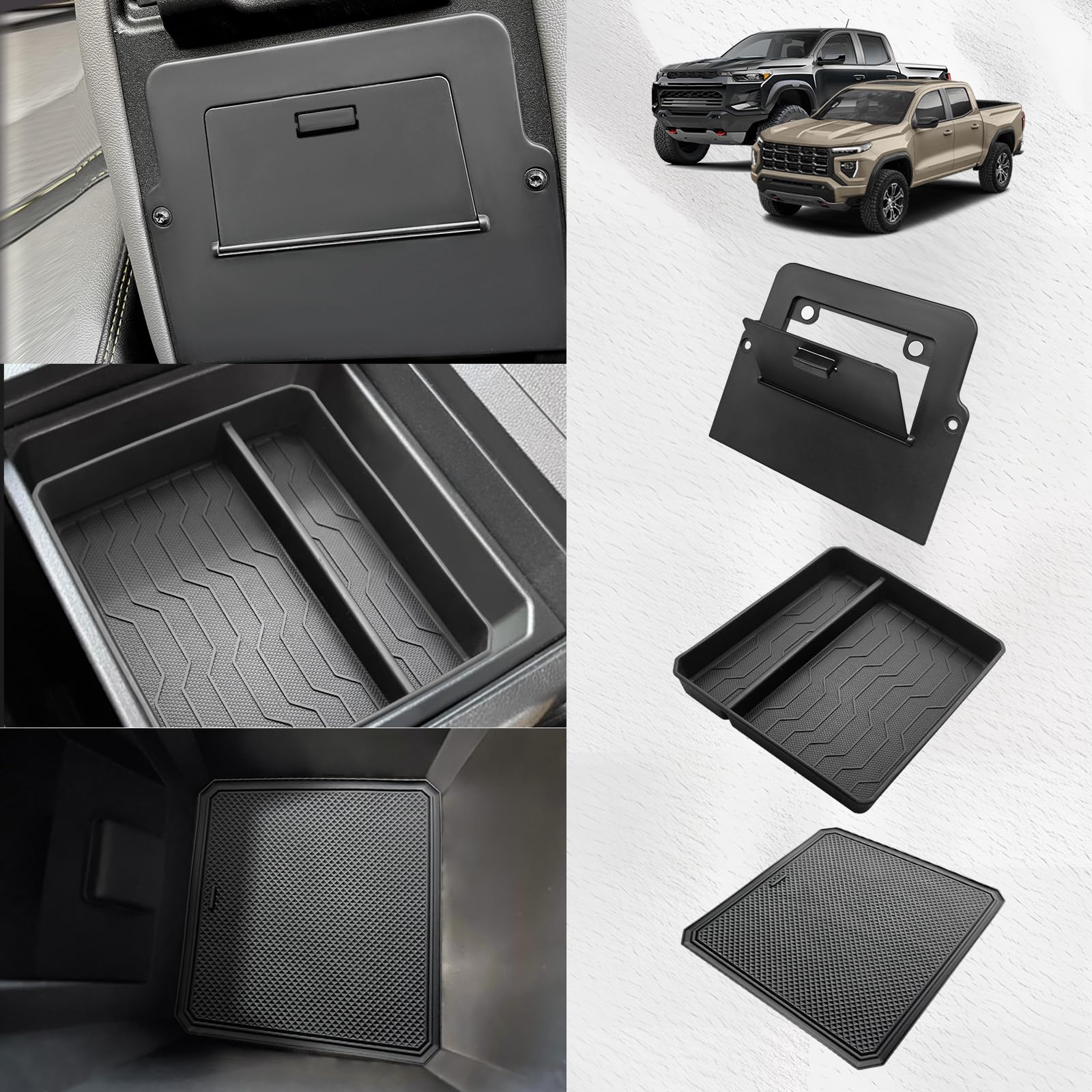 Muslogy Organizador de consola central, caja de almacenamiento oculta con imán, divisor de bandeja OEM y alfombrilla inferior de c