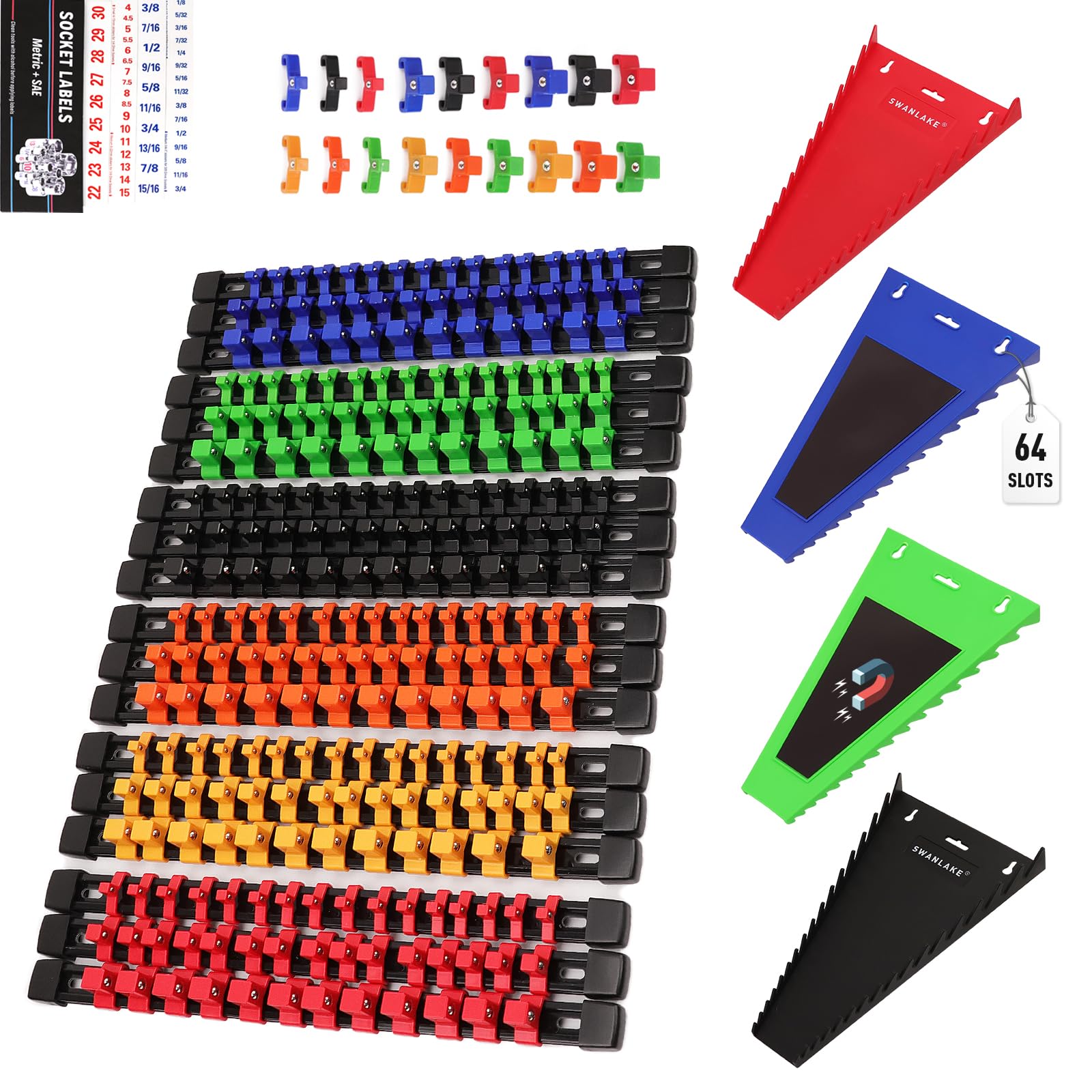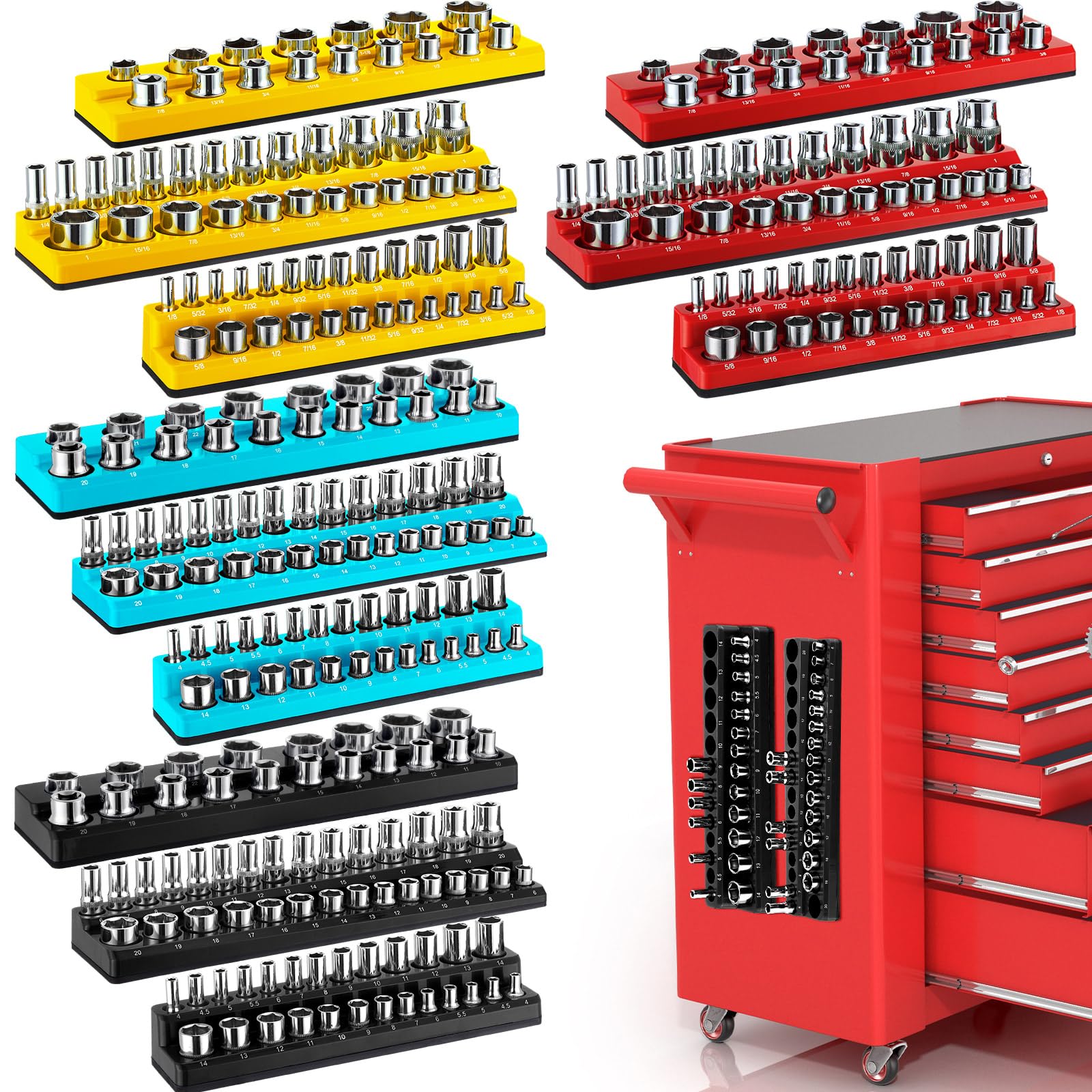 Juego de 22 organizadores de enchufes y organizador de llaves magnéticas, 1/4 pulgadas, 3/8 pulgadas, 1/2 pulgadas, soporte para l