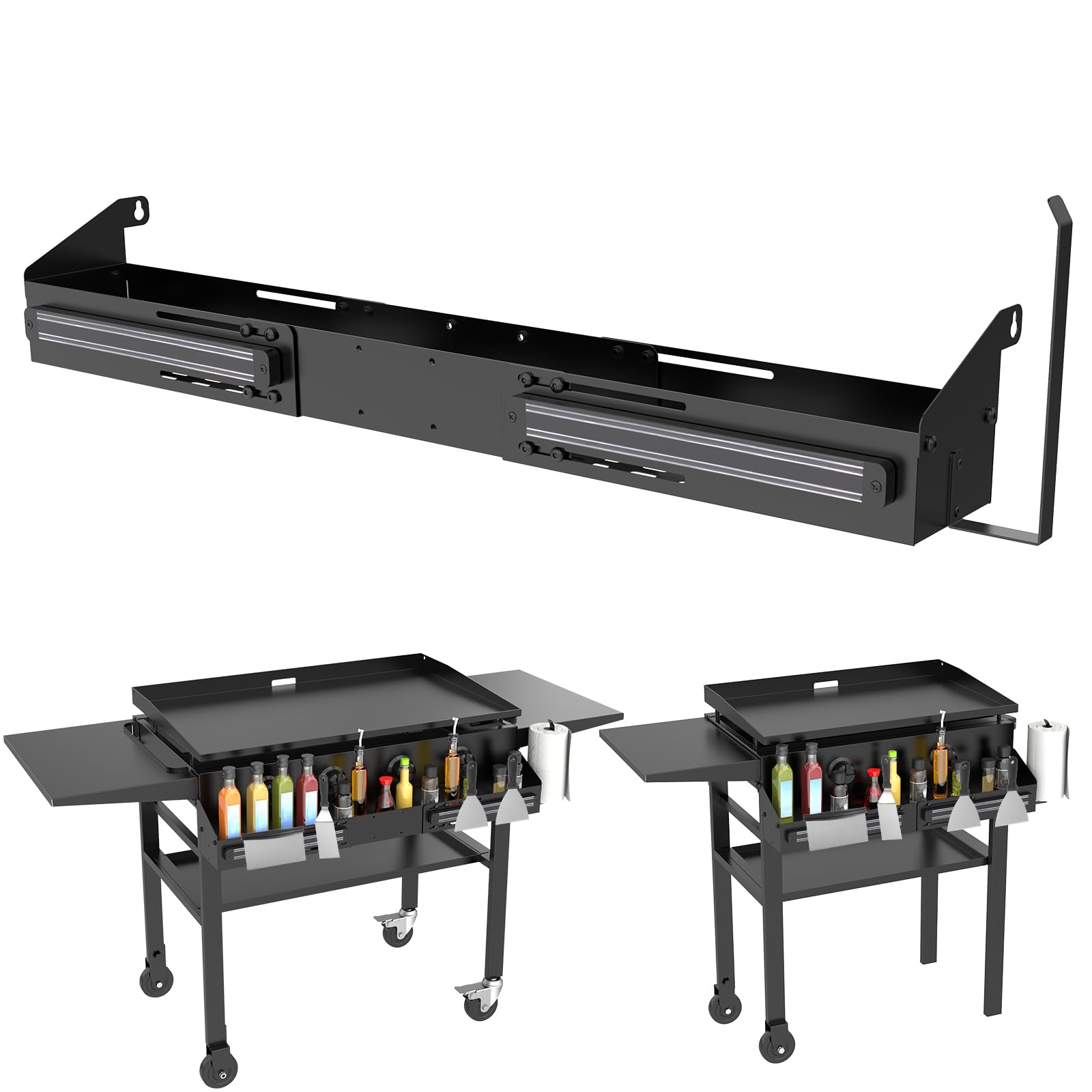 Organizador universal para parrilla Blackstone de 28 a 36 pulgadas, estante frontal para herramientas/botellas con 2 soportes magn