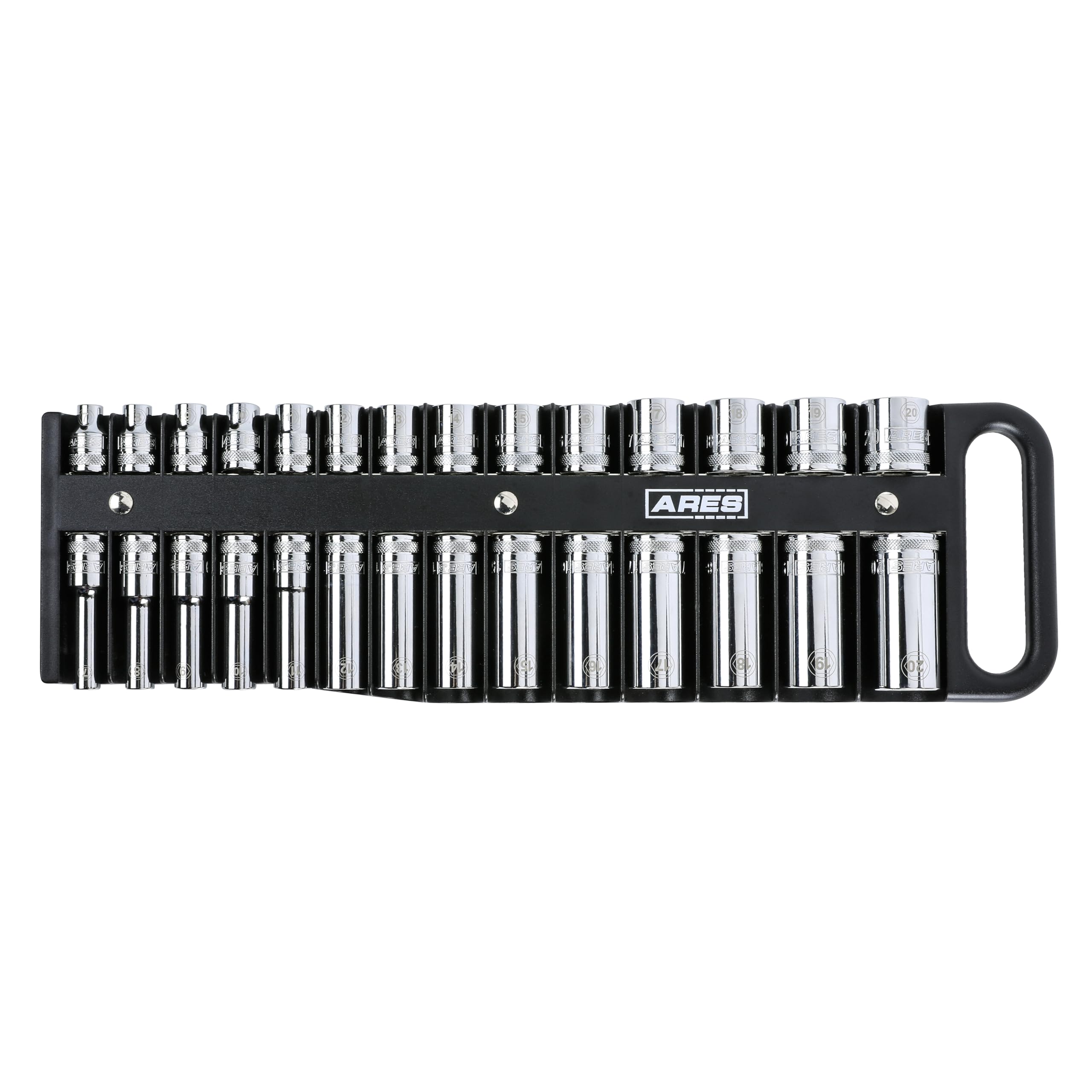 ARES 70219-28 piezas de 3/8 pulgadas soporte magnético para llaves de vaso – Sostiene de forma segura 14 enchufes estándar y 14 pr