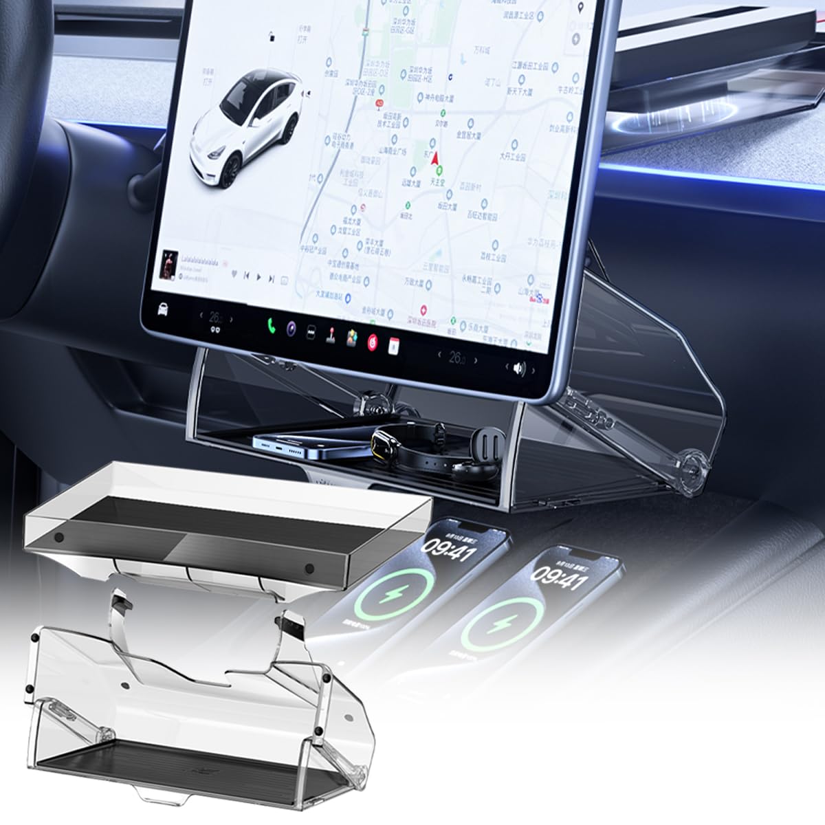 Bandeja de almacenamiento para debajo de la pantalla compatible con Tesla Model y 2017-2024 y Modelo 3 2017-2023, organizador magn