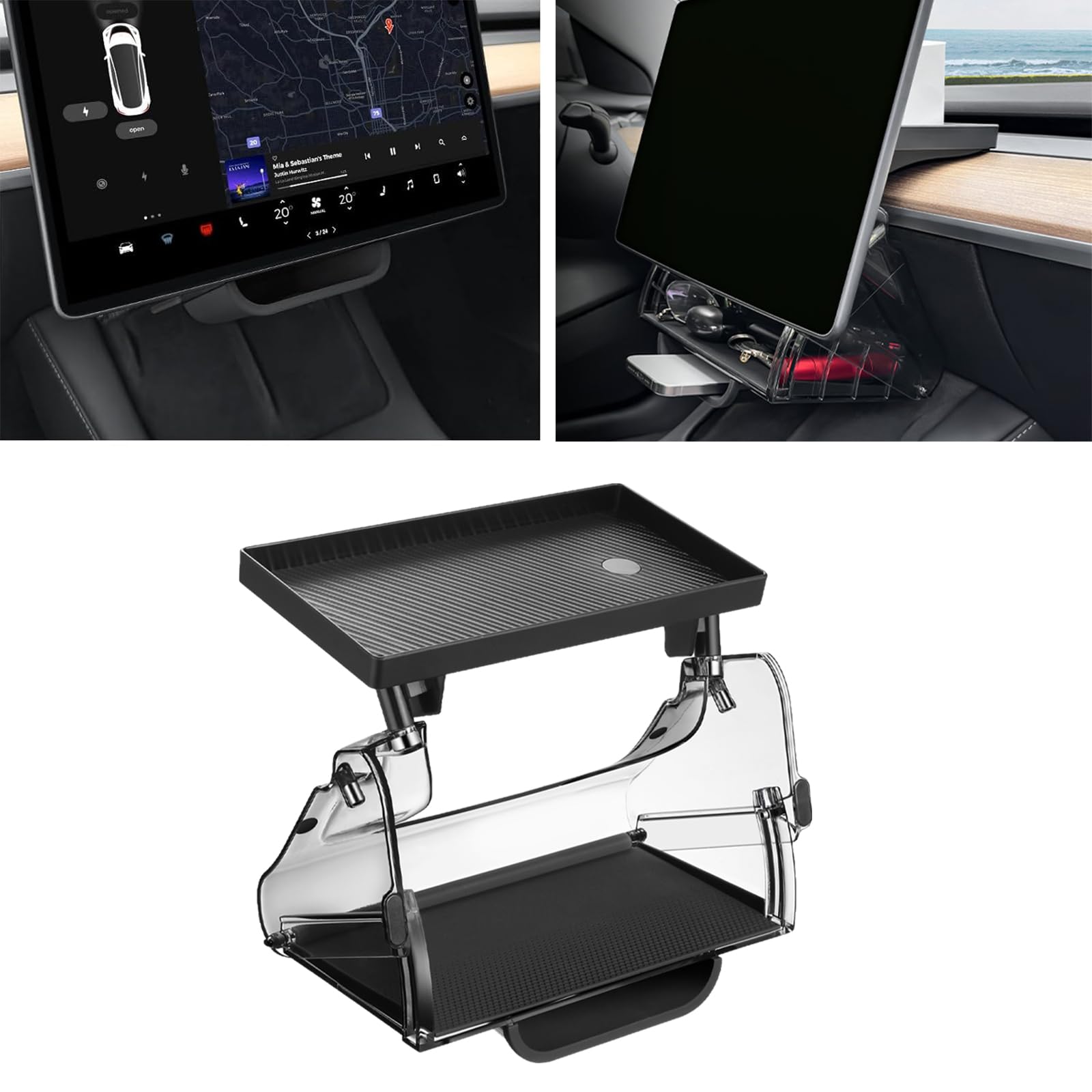 PARTOL Bandeja de almacenamiento debajo de la pantalla para Tesla modelo Y/3, bandeja organizadora de consola central, bandeja mag