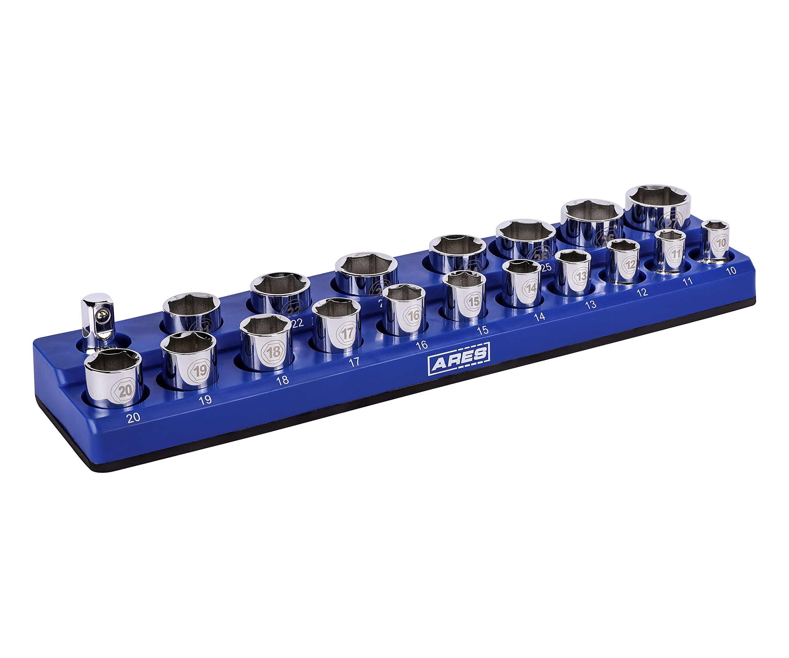 ARES 60010 – Organizador magnético para 19 vasos métricos de 1/2 pulgada, color azul, p/18 vasos y 1 adaptador para vaso, perfecto