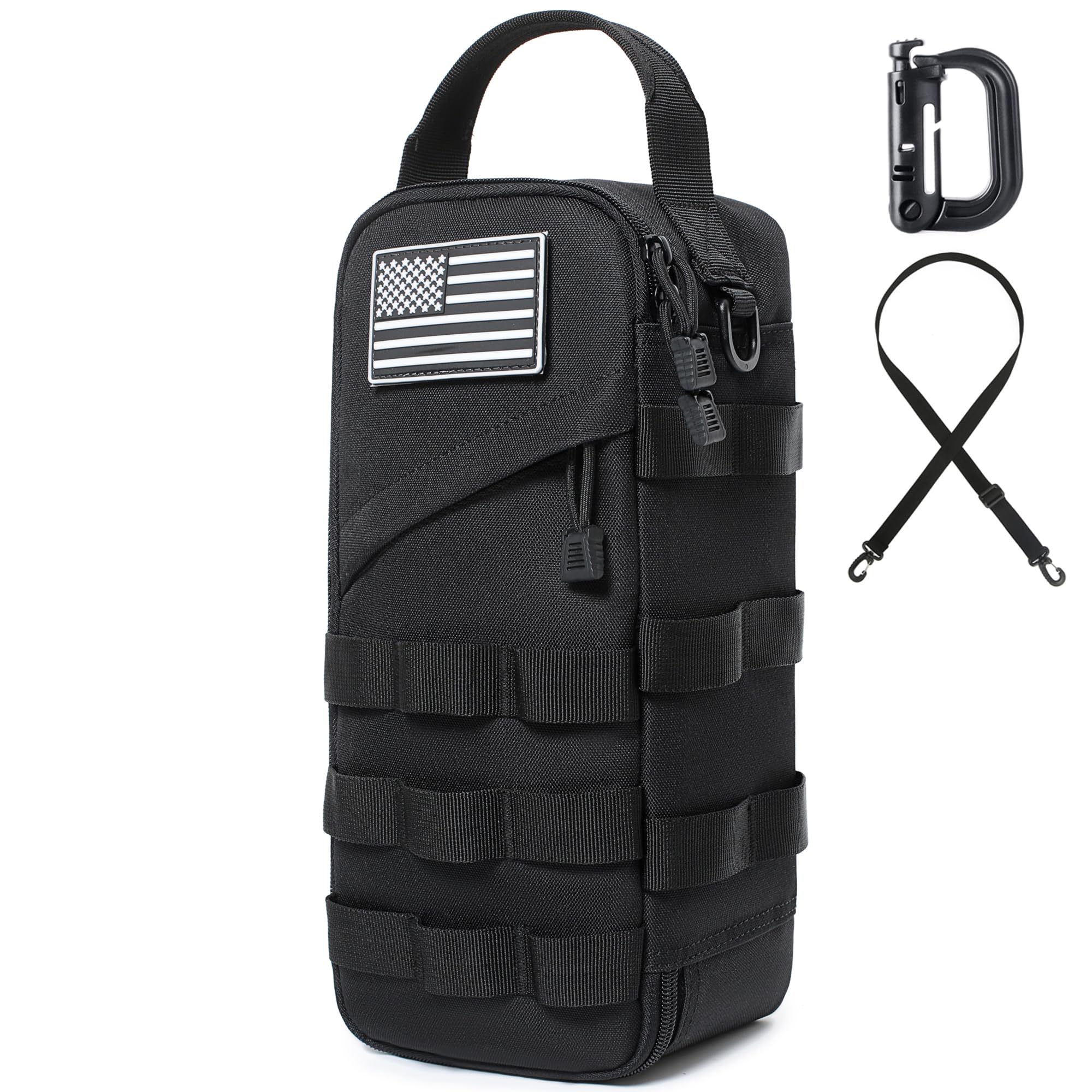 Bolsa de herramientas pequeña resistente con clip de anillo en D, parche de bandera de EE. UU. y correa para el hombro, pequeña bo
