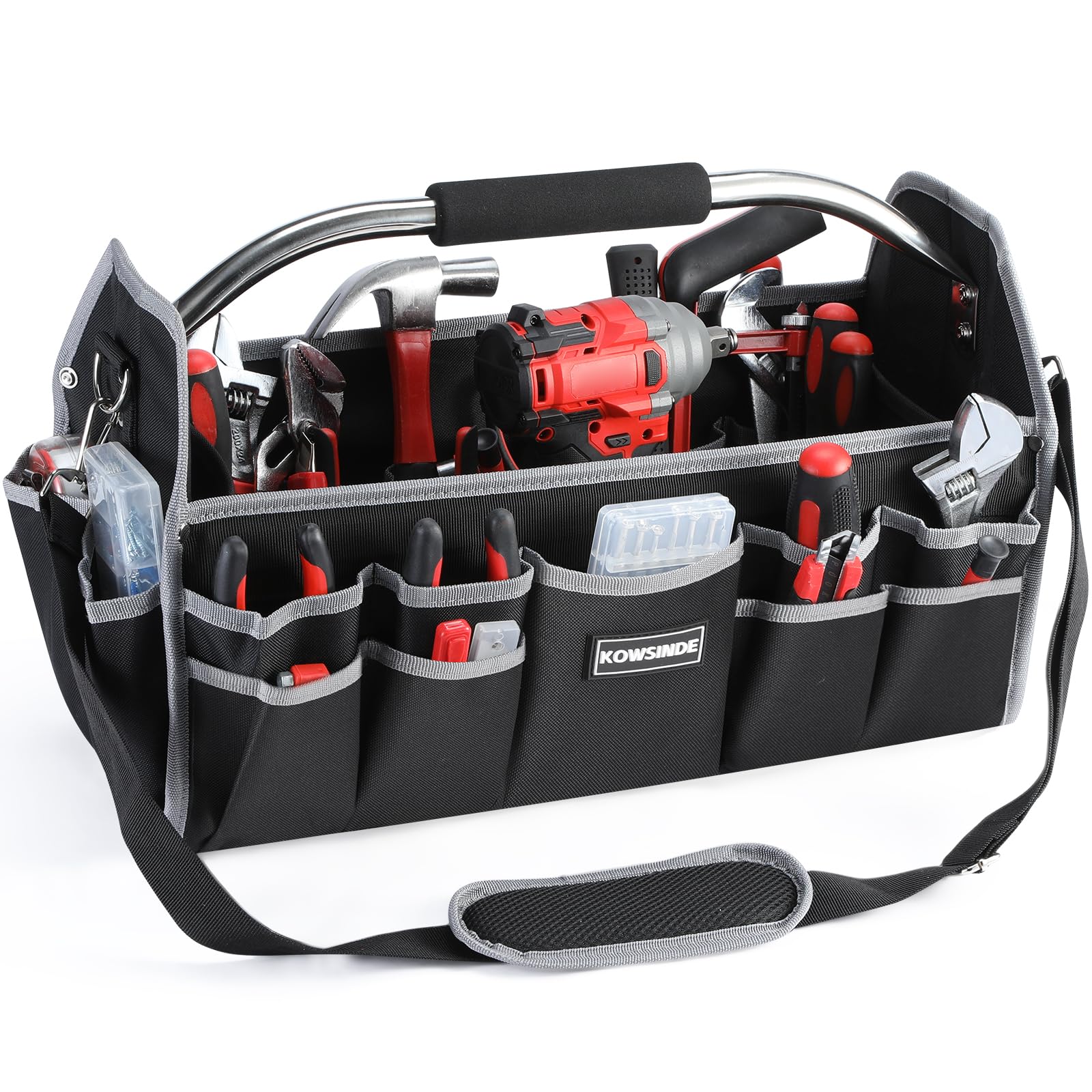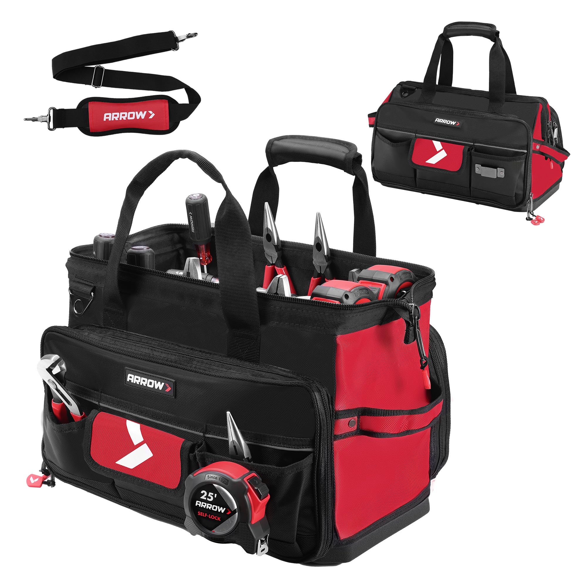 ARROW – Bolsa de herramientas grande de 17 pulgadas con 36 bolsillos multiusos, bolsas de herramientas para hombres resistentes co