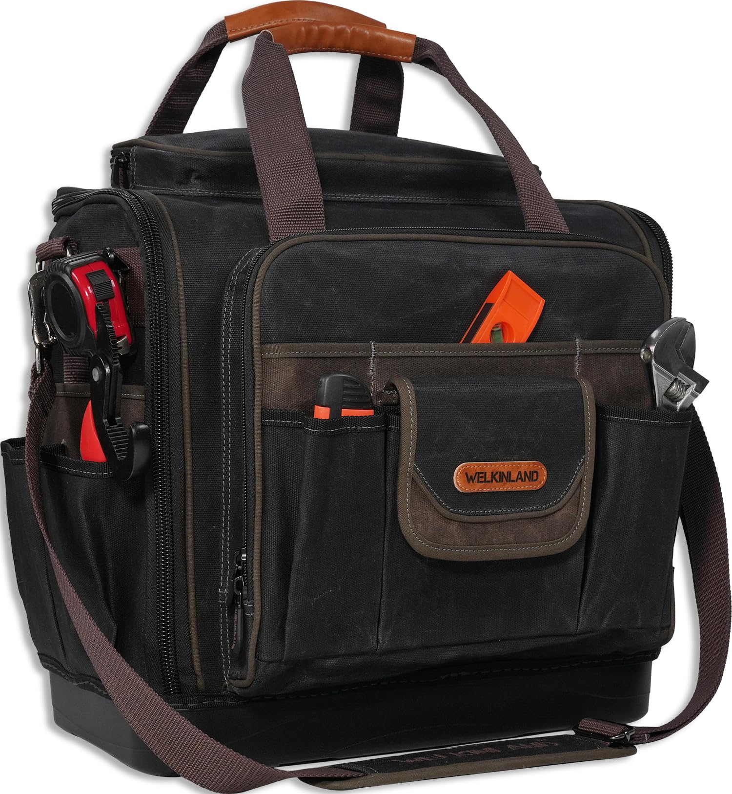 WELKINLAND Bolsa de herramientas para electricista, Bolsa de herramientas de fondo duro resistente, Bolsa de herramientas de lona