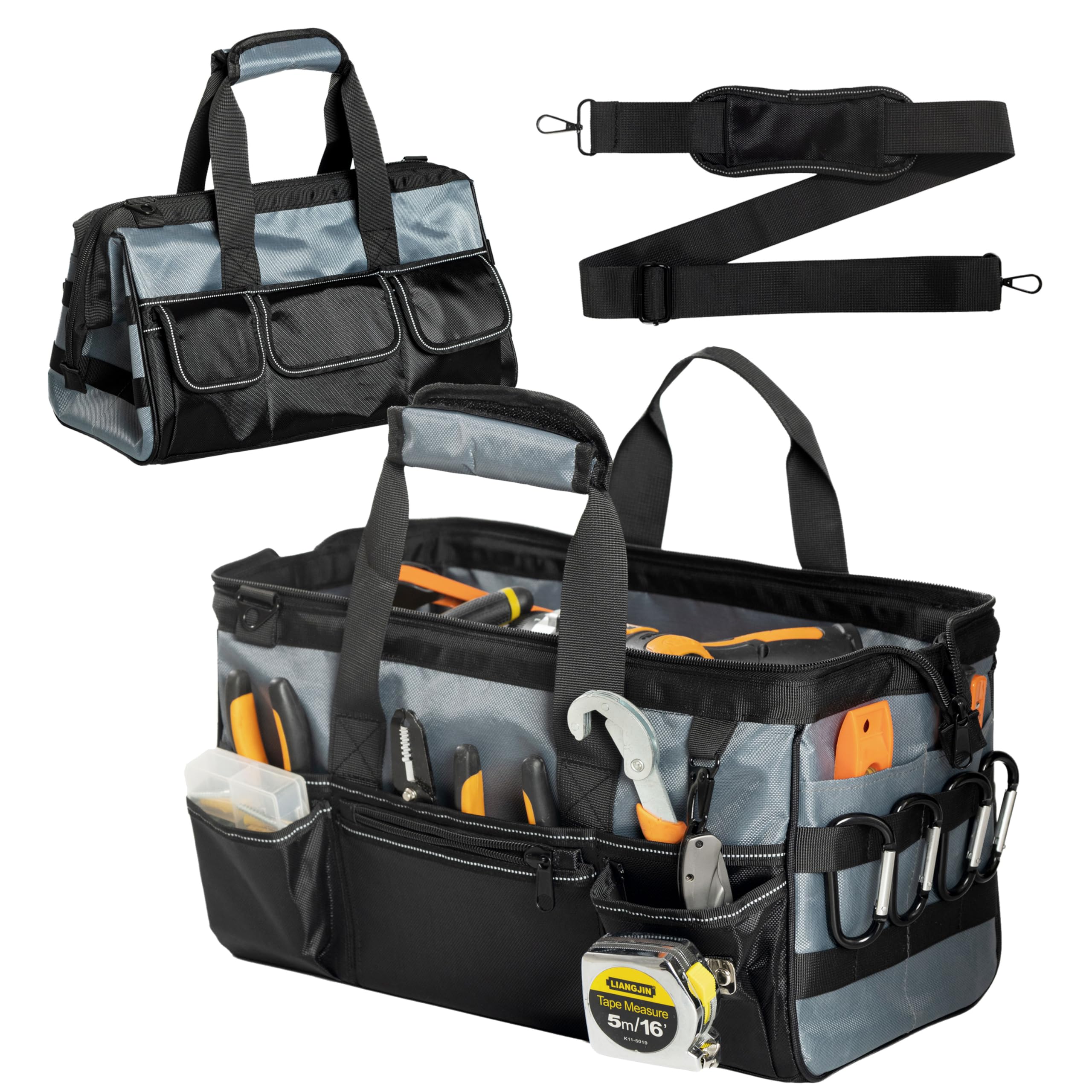 Bolsa de herramientas inferior resistente de 20 pulgadas con boca ancha para almacenamiento de herramientas, portador y organizado