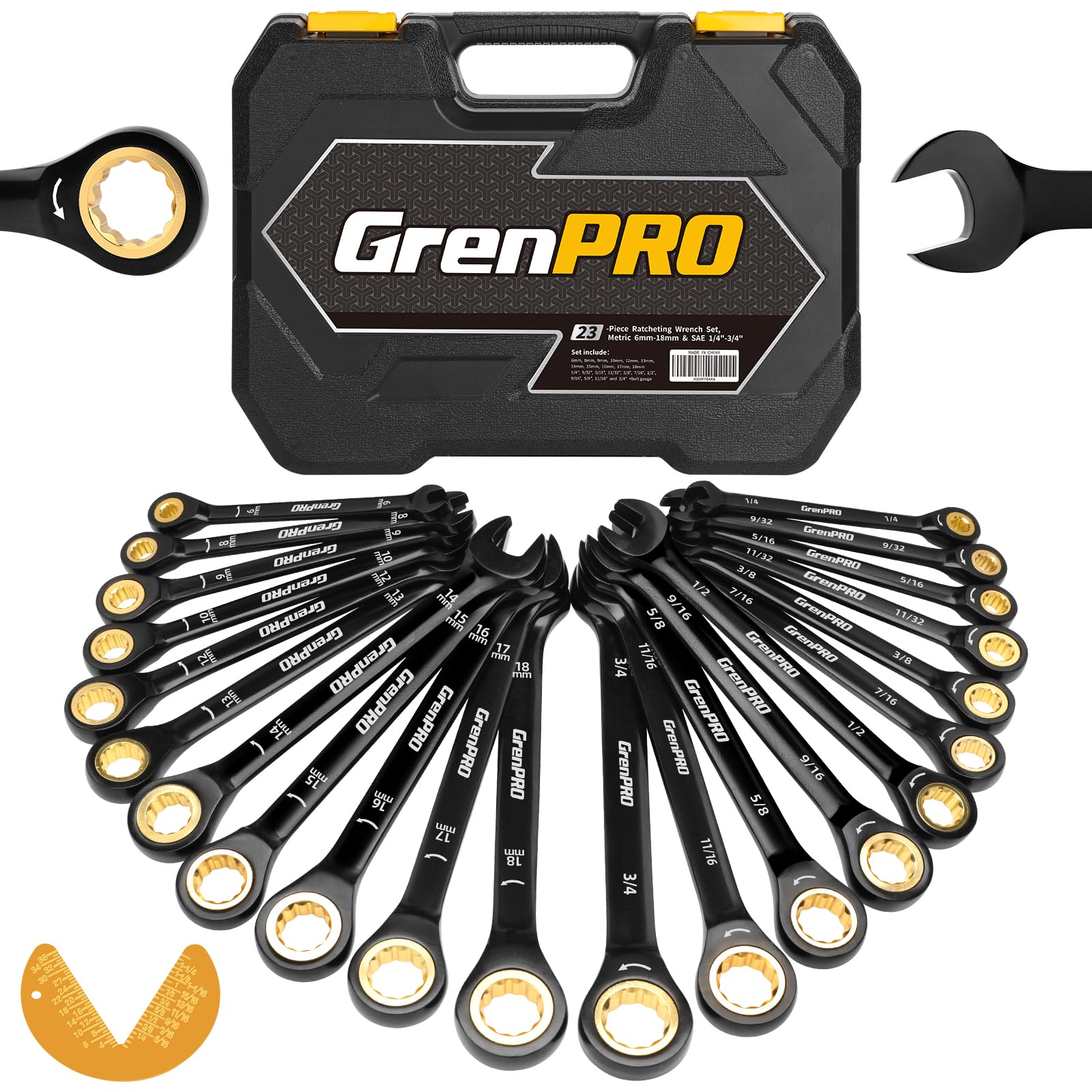 Juego de llaves inglesas, juego de llaves desplazadas métricas y estándar, 10 piezas de 0.236-0.906 in 75 grados, kit de llaves gr