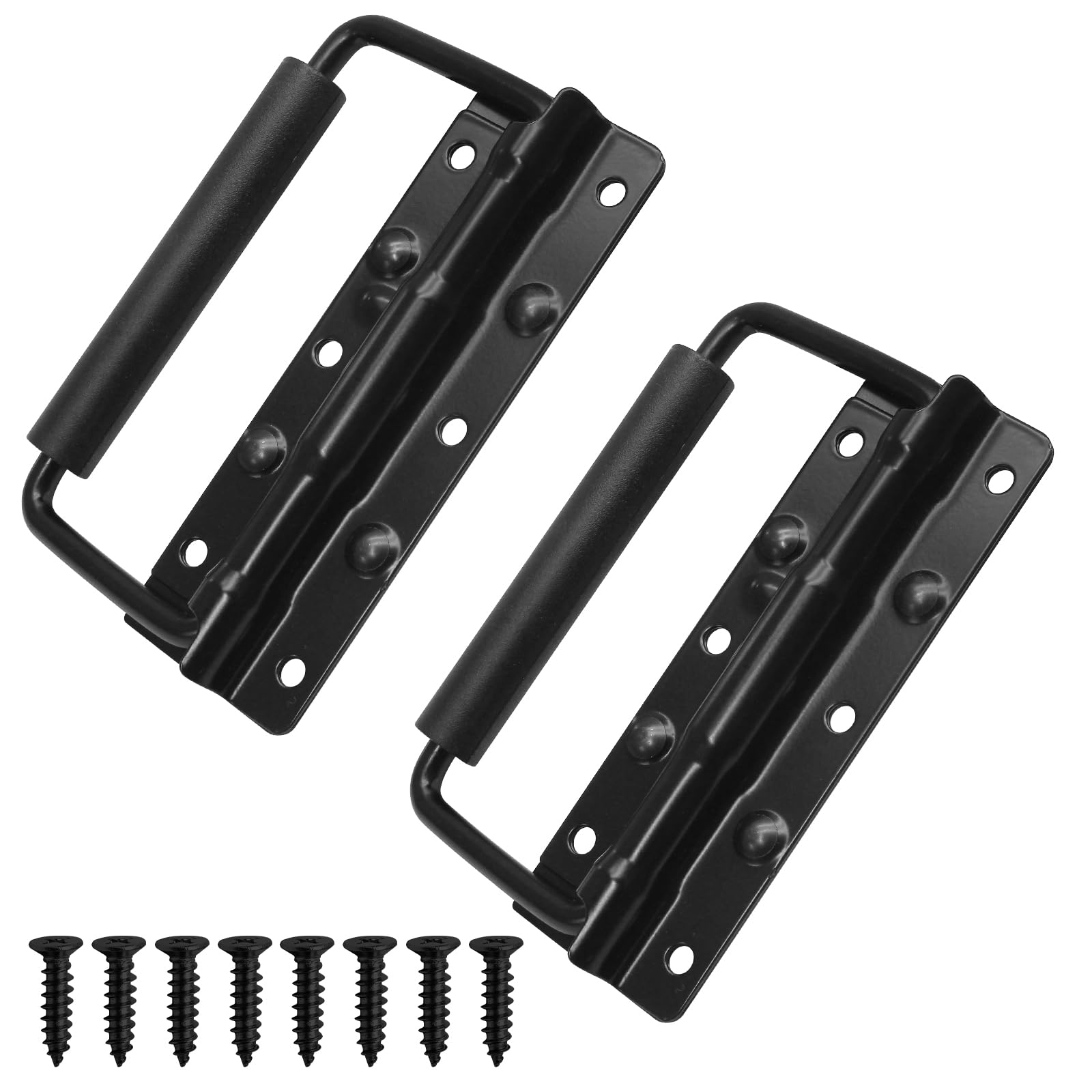 Litoexpe 2 asas con resorte de 4.9 pulgadas, mango negro resistente, mango de pecho de acero inoxidable con agarre de goma, asas p