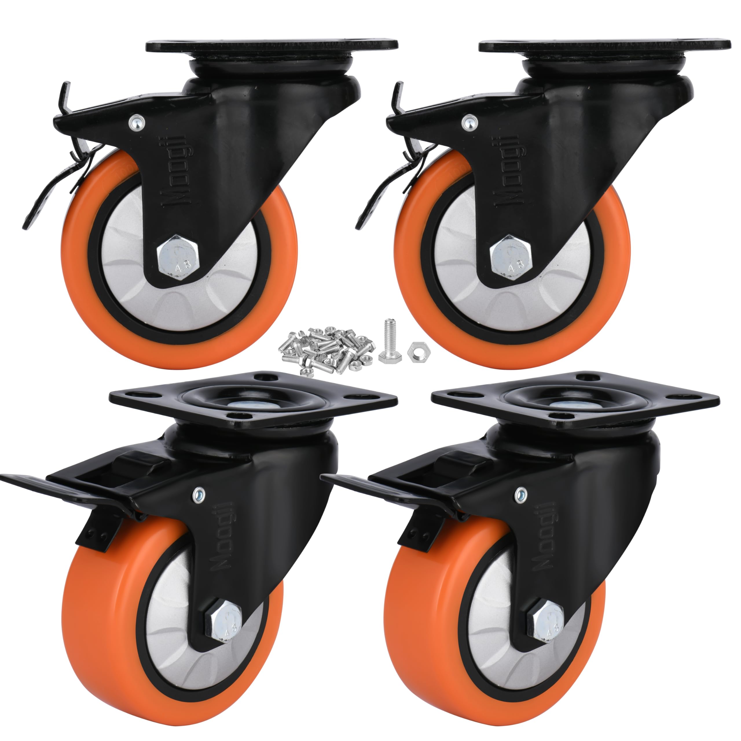 Heavy Duty Industrial Brake Caster,Load Capacity 3500lbs, No Noise Polyurethane Wheel on Steel Hub for Toolbox Workbench (4 INCH)