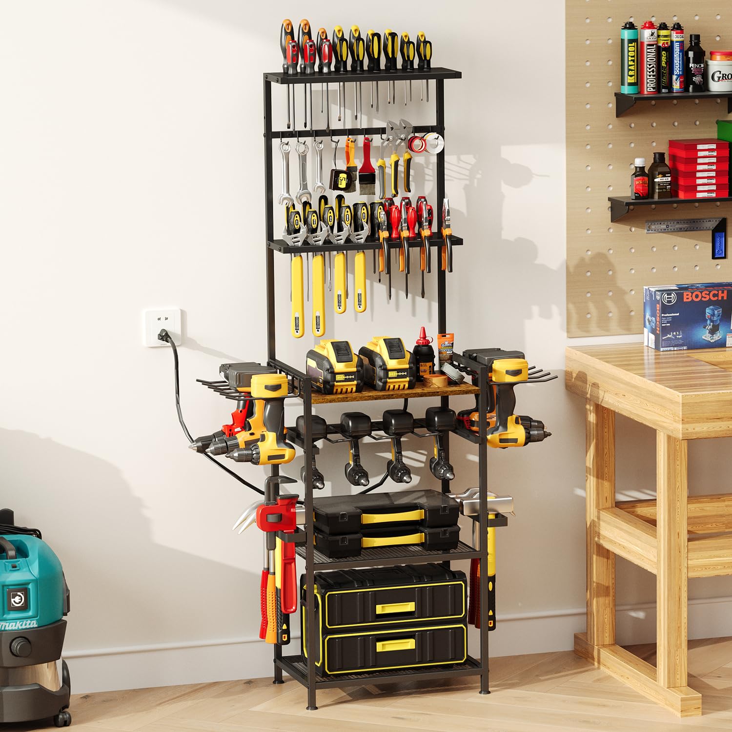 Organizador de almacenamiento de herramientas eléctricas de piso con estación de carga, carrito de herramientas inalámbrico resist
