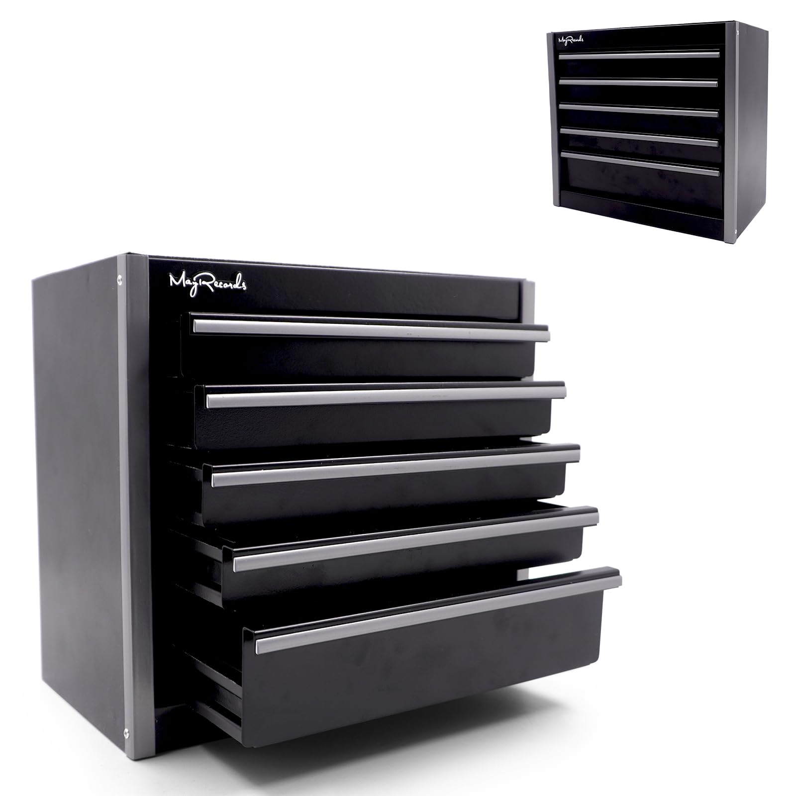 Mini caja de herramientas de metal negra con 5 cajones y almacenamiento superior, almacenamiento de herramientas portátiles y orga