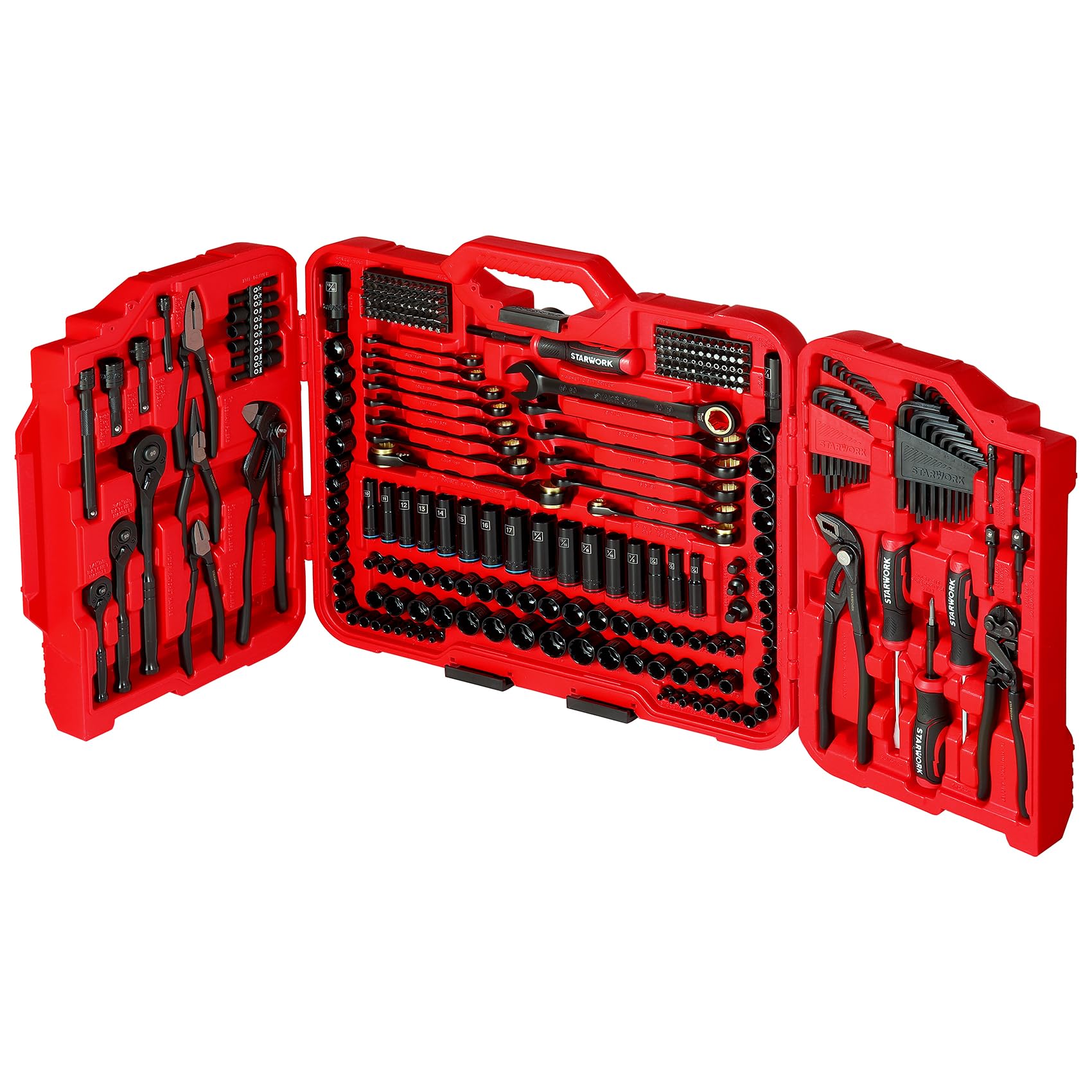 CRAFTSMAN Juego de herramientas mecánicas, 256 piezas de herramientas de mano y juego de zócalos con caja de herramientas de 2 caj
