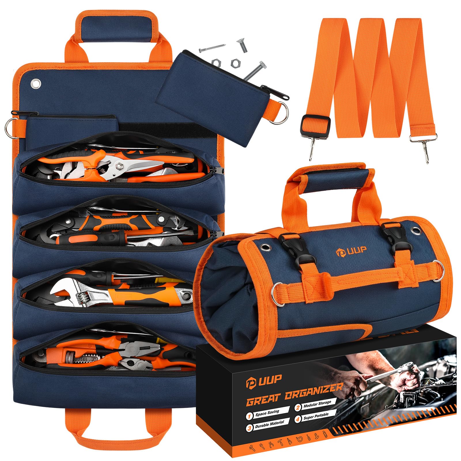 Bolsa de herramientas enrollable, organizador de almacenamiento de herramientas vacías enrollado resistente, organizador plegable