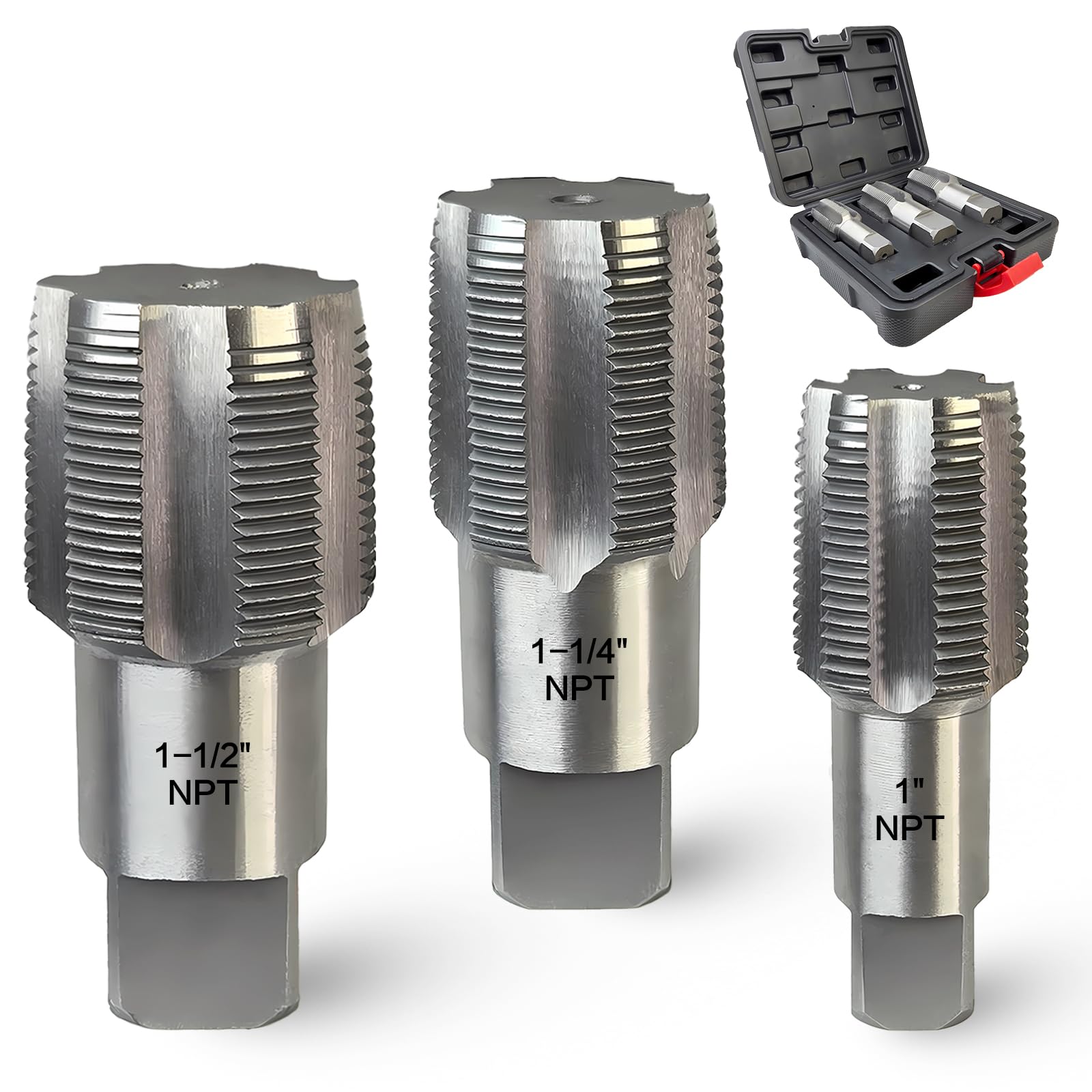 Juego de grifos de tubo NPT de 3 piezas, juego de grifos de acero al carbono de precisión para roscas limpias y precisas, 1 pulgad