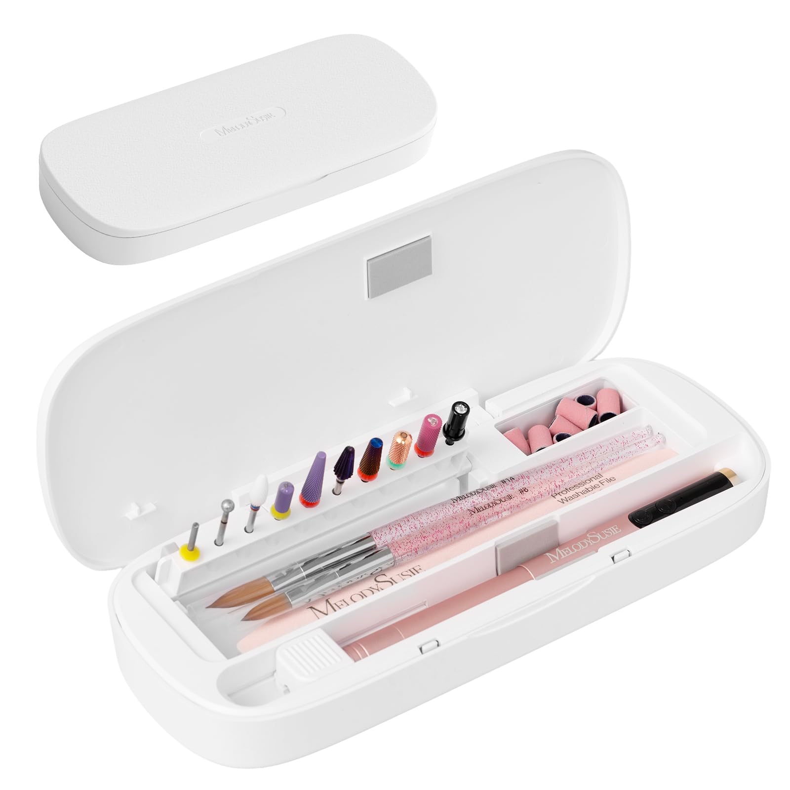 MelodySusie – Caja de almacenamiento de herramientas de uñas acrílicas, soporte portátil a prueba de polvo, organizador de contene
