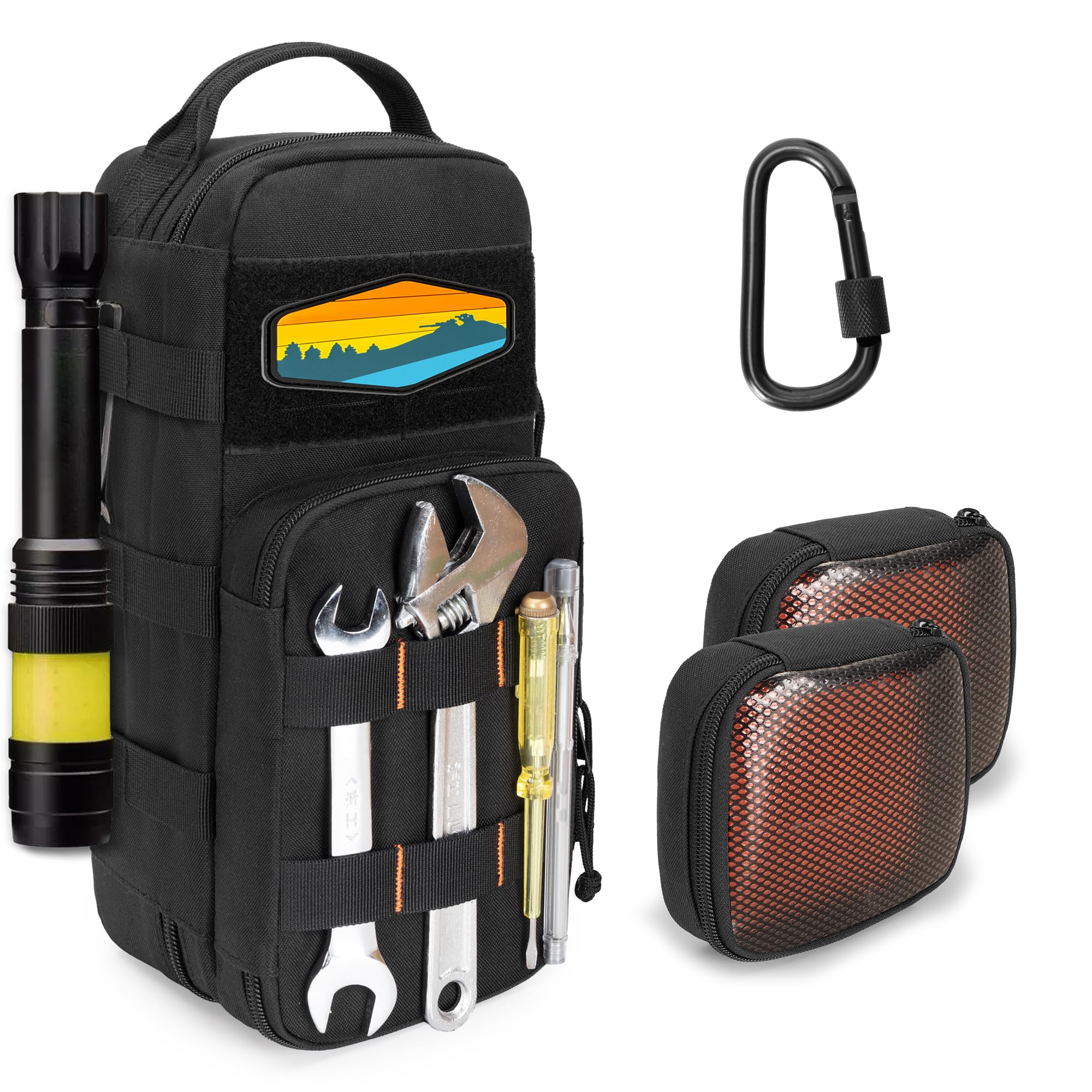 Bolsa de herramientas pequeña resistente con 2 bolsas con cremallera, organizador de herramientas táctica multifuncional Molle con