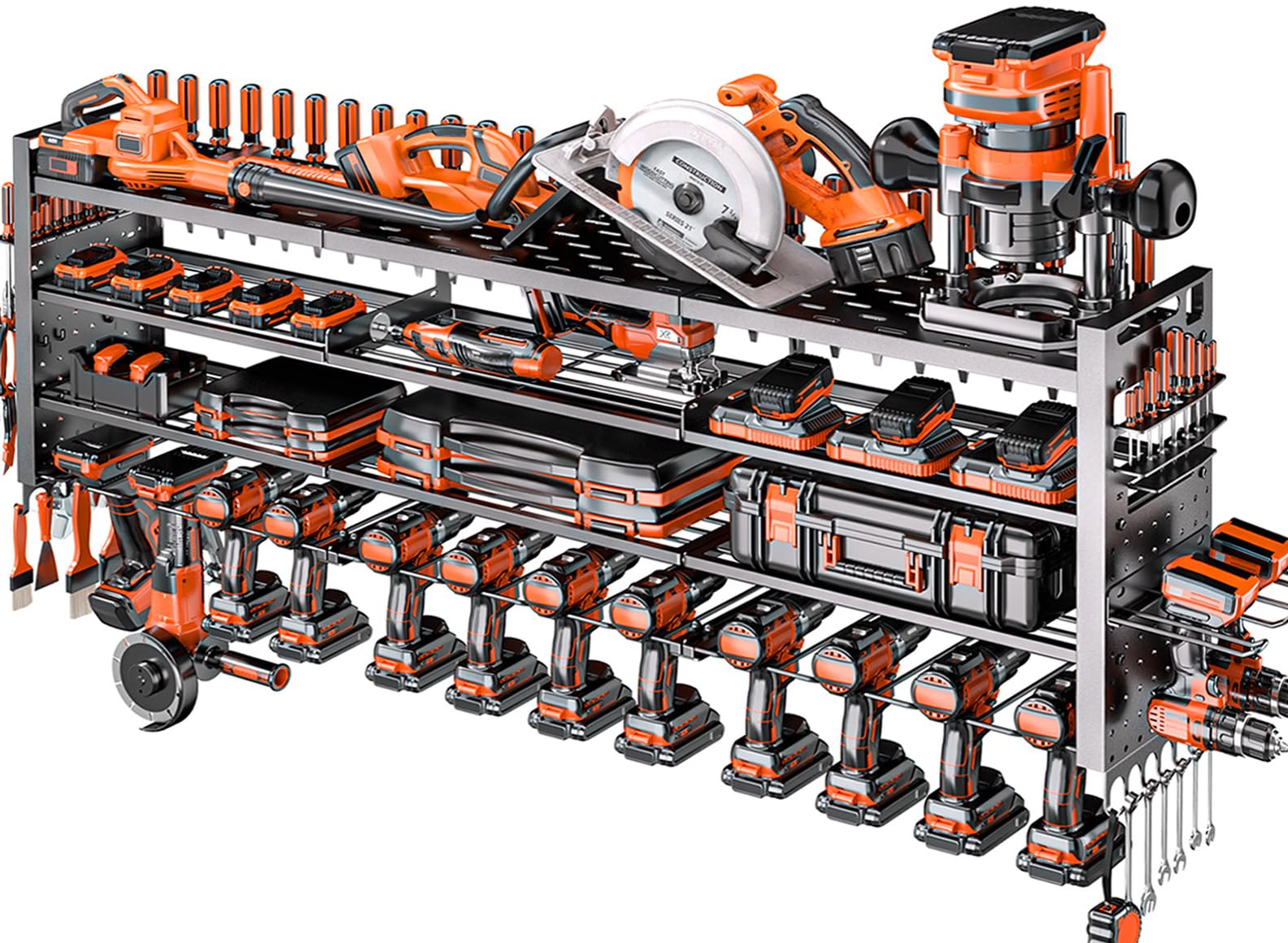 Organizador grande de herramientas eléctricas de 49.8 pulgadas de ancho, organizador de herramientas resistente con 14 soportes pa