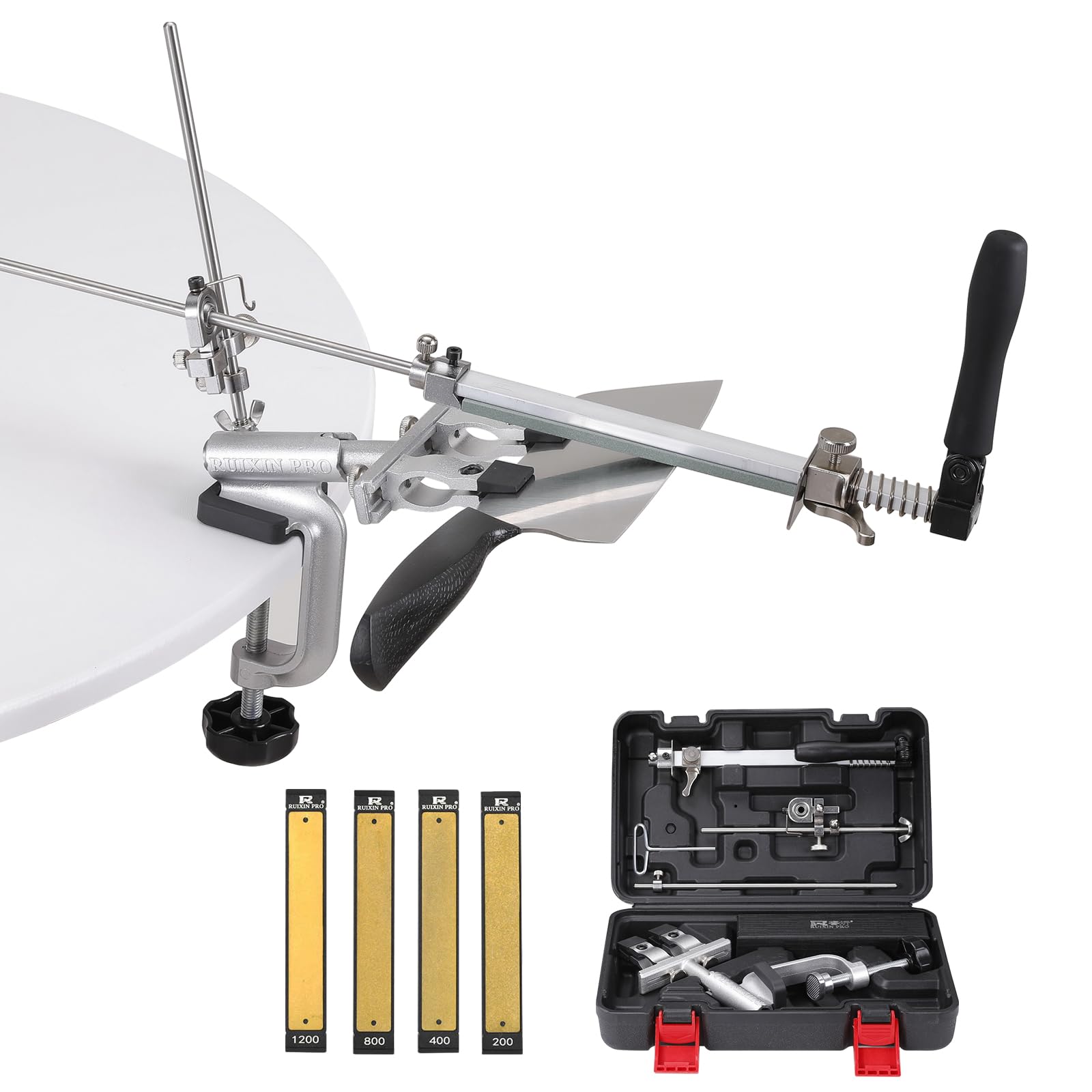 RX-009 – Afilador de cuchillos profesional, kit de afilado de cuchillos con 4 piedras de afilar, diseño de rotación de 360°, acero