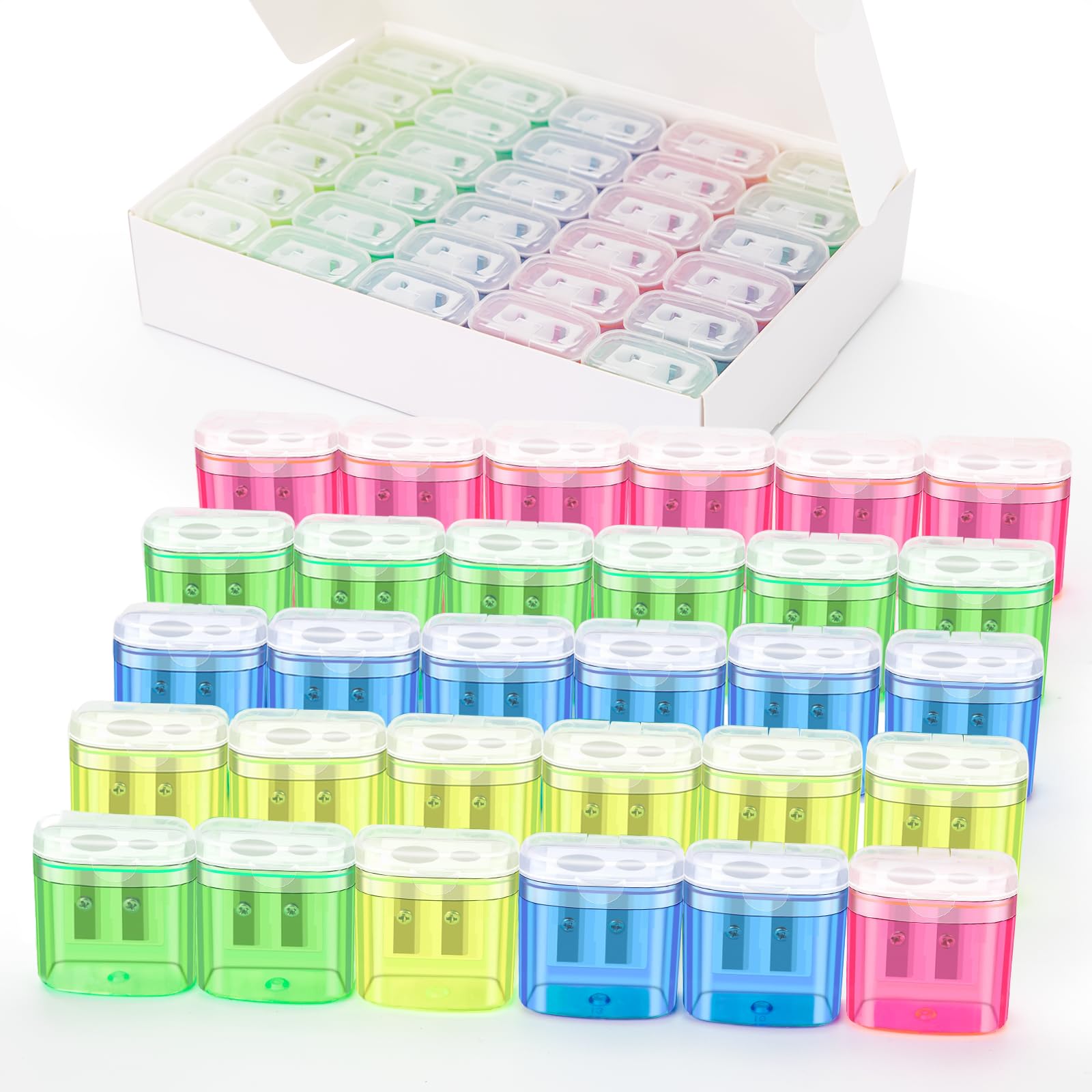 SATINIOR 36 sacapuntas de colores, sacapuntas manuales de doble agujero con tapa, sacapuntas de mano compactos de plástico a grane